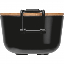 Bambusowa pokrywka może służyć także jako niewielka tacka - praktyczny detal, który ułatwia korzystanie z pudełka w każdych warunkach.To nie tylko praktyczny, ale i estetyczny gadżet - idealny dla osób, które lubią mieć wszystko dobrze zorganizowane. Świetnie sprawdzi się także jako nowoczesny upominek reklamowy, łączący ekologię, wygodę i styl.
