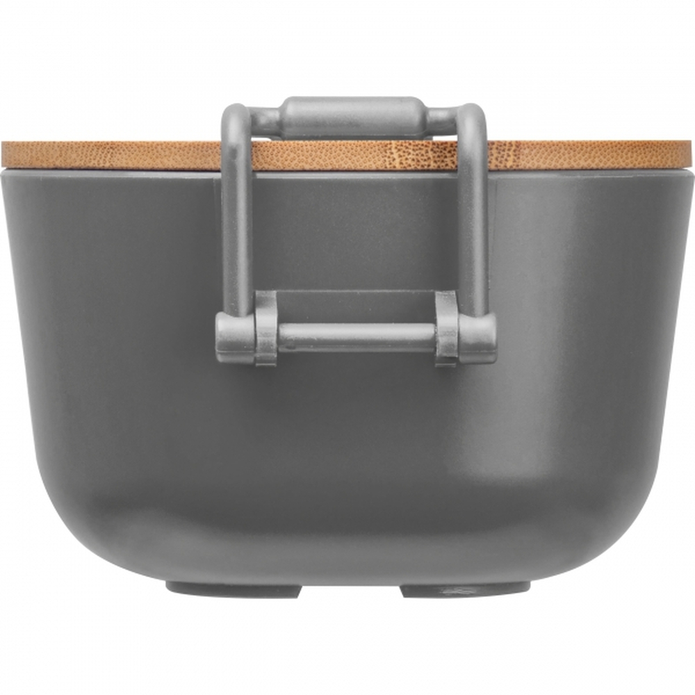 Bambusowa pokrywka może służyć także jako niewielka tacka - praktyczny detal, który ułatwia korzystanie z pudełka w każdych warunkach.To nie tylko praktyczny, ale i estetyczny gadżet - idealny dla osób, które lubią mieć wszystko dobrze zorganizowane. Świetnie sprawdzi się także jako nowoczesny upominek reklamowy, łączący ekologię, wygodę i styl.