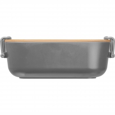 Nowoczesne pudełko na lunch, które łączy funkcjonalność z naturalnym designem. Wykonane z trwałych materiałów i wyposażone w elegancką bambusową pokrywkę, doskonale sprawdzi się zarówno w biurze, jak i w podróży czy na pikniku.Pojemność 750 ml pozwala wygodnie zapakować posiłek, a metalowe zaciski pewnie zamykają pudełko, chroniąc jego zawartość przed przypadkowym otwarciem.