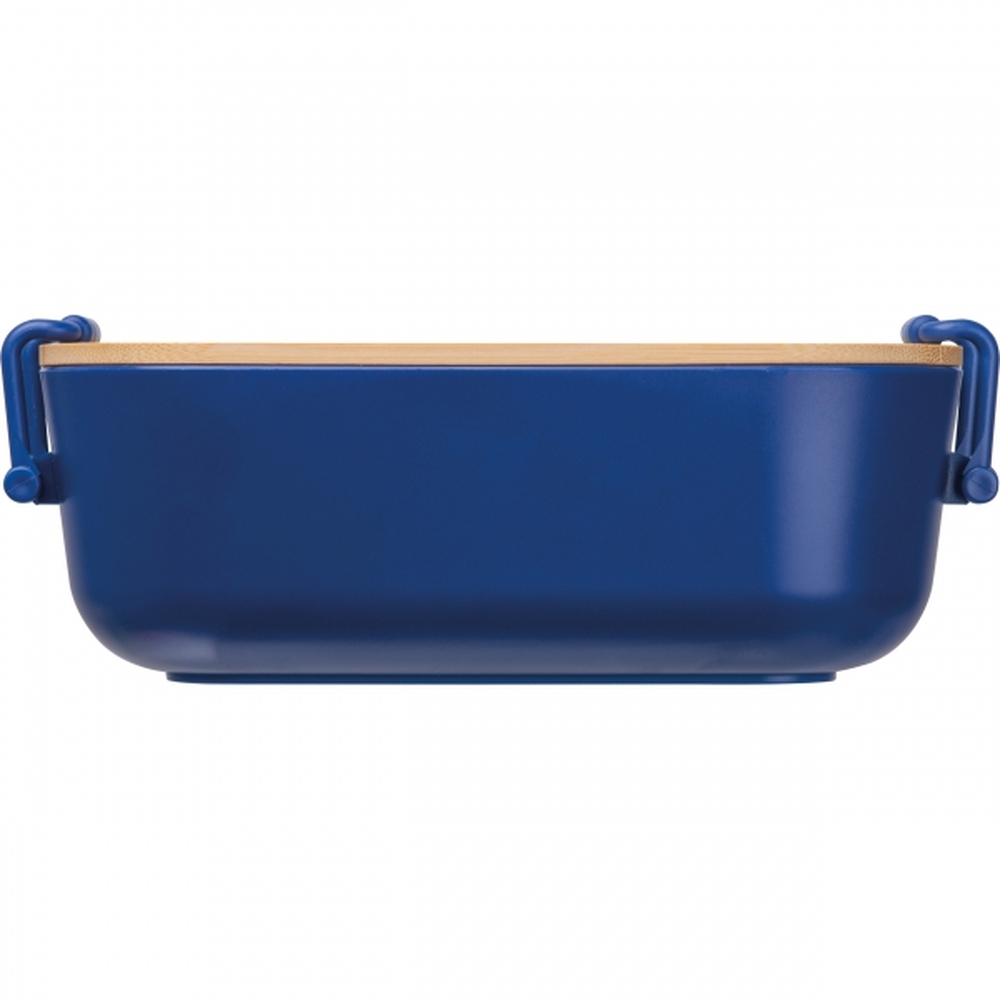 Pudełko na lunch, o pojemności 750 ml, z bambusową pokrywką i metalowymi zaciskami, zamykającymi pudełko.