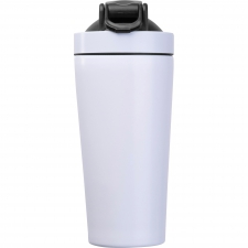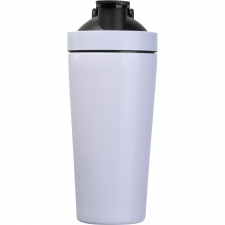 Shaker o pojemności 750 ml do koktajli proteinowych, wykonany ze stali nierdzewnej z recyklingu, wyposażony w metalowe sitko do mieszania.
