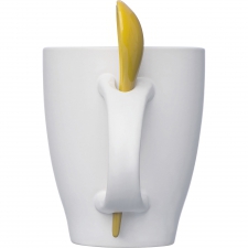 Kubek ceramiczny o pojemności 250 ml, sprzedawany w zestawie z łyżeczką w kolorze pasującym do wnętrza kubka.