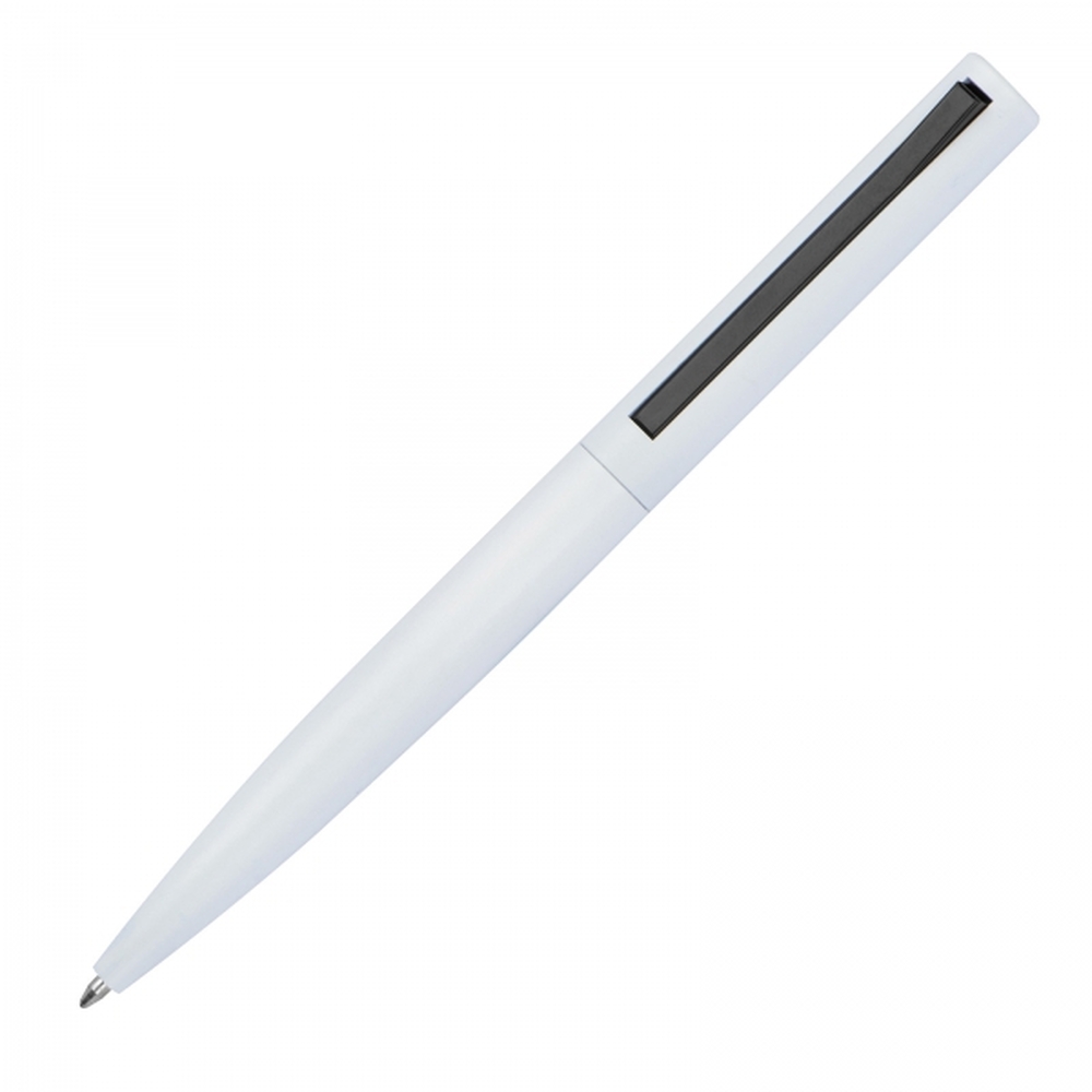 Długopis piszący na niebiesko, z półżelowym wkładem, wykonany z aluminium pochodzącego z recyklingu. Powierzchnia długopisu matowa.