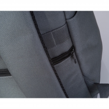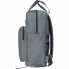 Plecak wykonany z RPET, wyposażony w boczne kieszenie, wyściełane szelki na ramiona, przednią kieszeń na zamek oraz dedykowaną przegrodę na laptopa. Posiada funkcję montażu na walizkę typu trolley oraz zabezpieczenie antykradzieżowe.