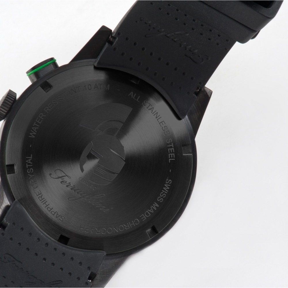 Zawiera stoper, prędkościomierz oraz wskaźnik daty, co czyni go idealnym wyborem dla osób aktywnych, które potrzebują zegarka o szerokim zakresie możliwości. Dzięki tym funkcjom, zegarek nie tylko pełni rolę eleganckiego akcesorium, ale także praktycznego narzędzia w codziennym życiu.Zegarek CENTURIO Ferraghini posiada również wyjątkową wodoszczelność na poziomie 100 m (10ATM), co pozwala na jego używanie podczas pływania, nurkowania czy w trudniejszych warunkach atmosferycznych, zapewniając pewność, że zegarek będzie działał niezawodnie nawet w kontakcie z wodą.Pasek zegarka wykonany jest z wysokiej jakości kauczuku, co zapewnia wygodę noszenia i elastyczność, a także doskonale sprawdza się w każdych warunkach - zarówno w trakcie codziennych obowiązków, jak i aktywności na świeżym powietrzu.