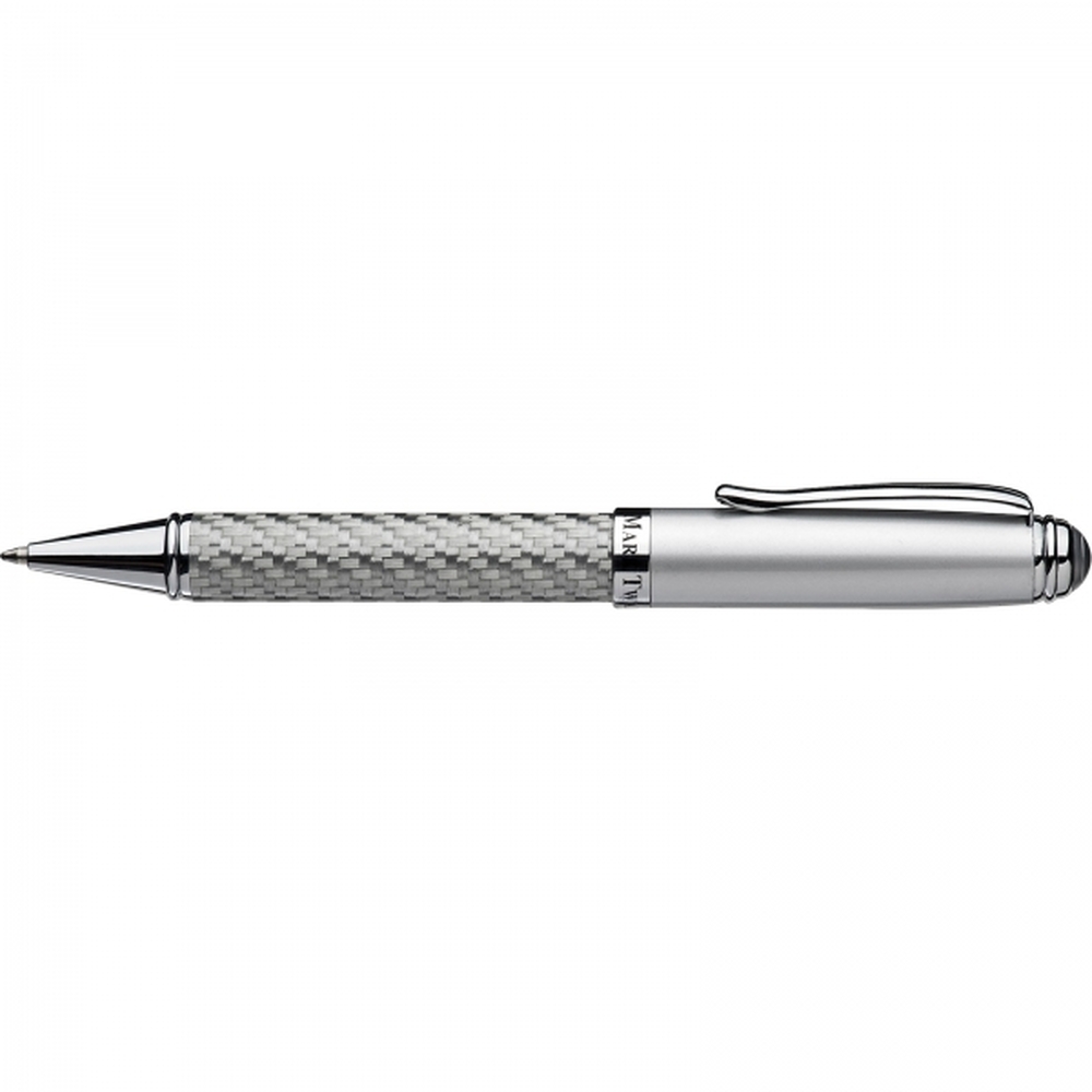 Długopis z kolekcji Mark Twain Columbia to doskonały efekt połączenia klasycznej formy z nowoczesnym designem. Karbonowe wykończenie przyciąga wzrok, natomiast dbałość o jakość wykonania sprawia, że długopis doskonale leży w dłoni. Długopis z mechanizmem obrotowym posiada wkład piszący na niebiesko. W zestawie z eleganckim etui.