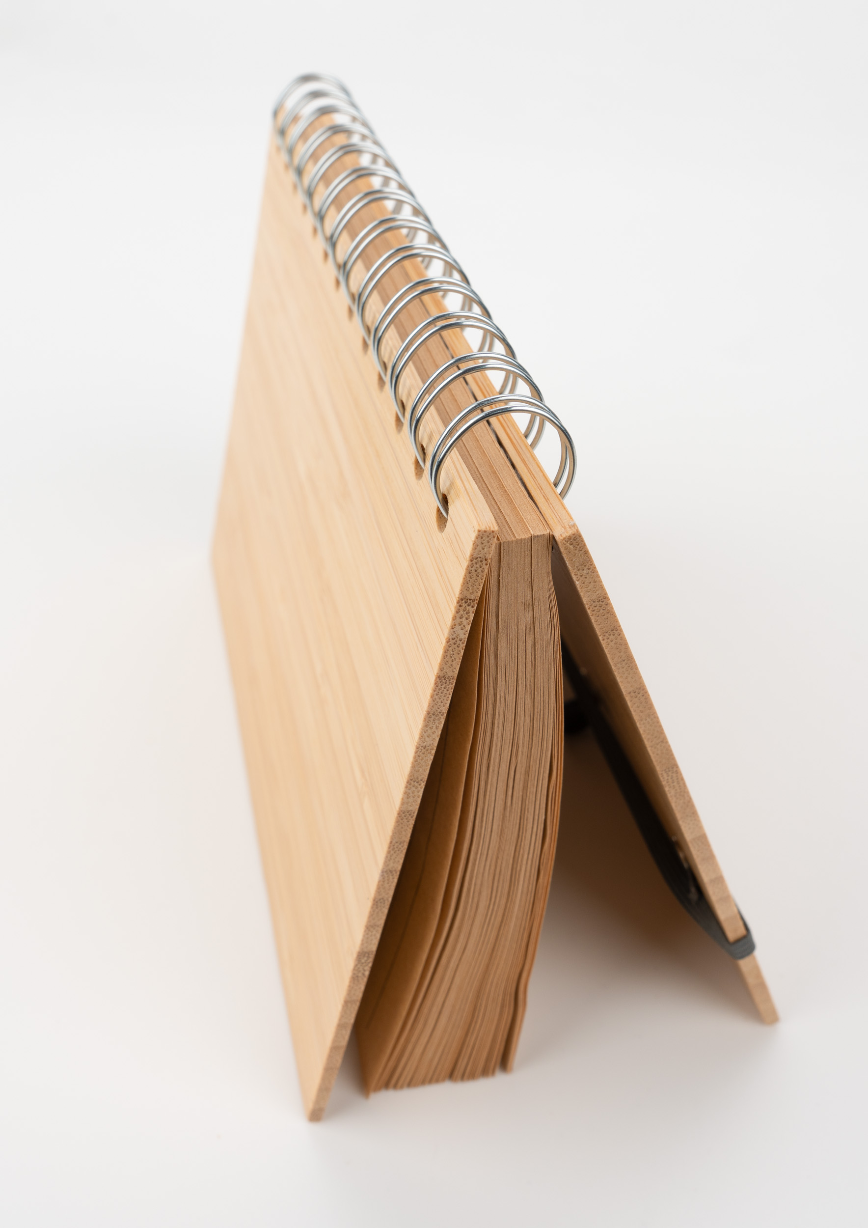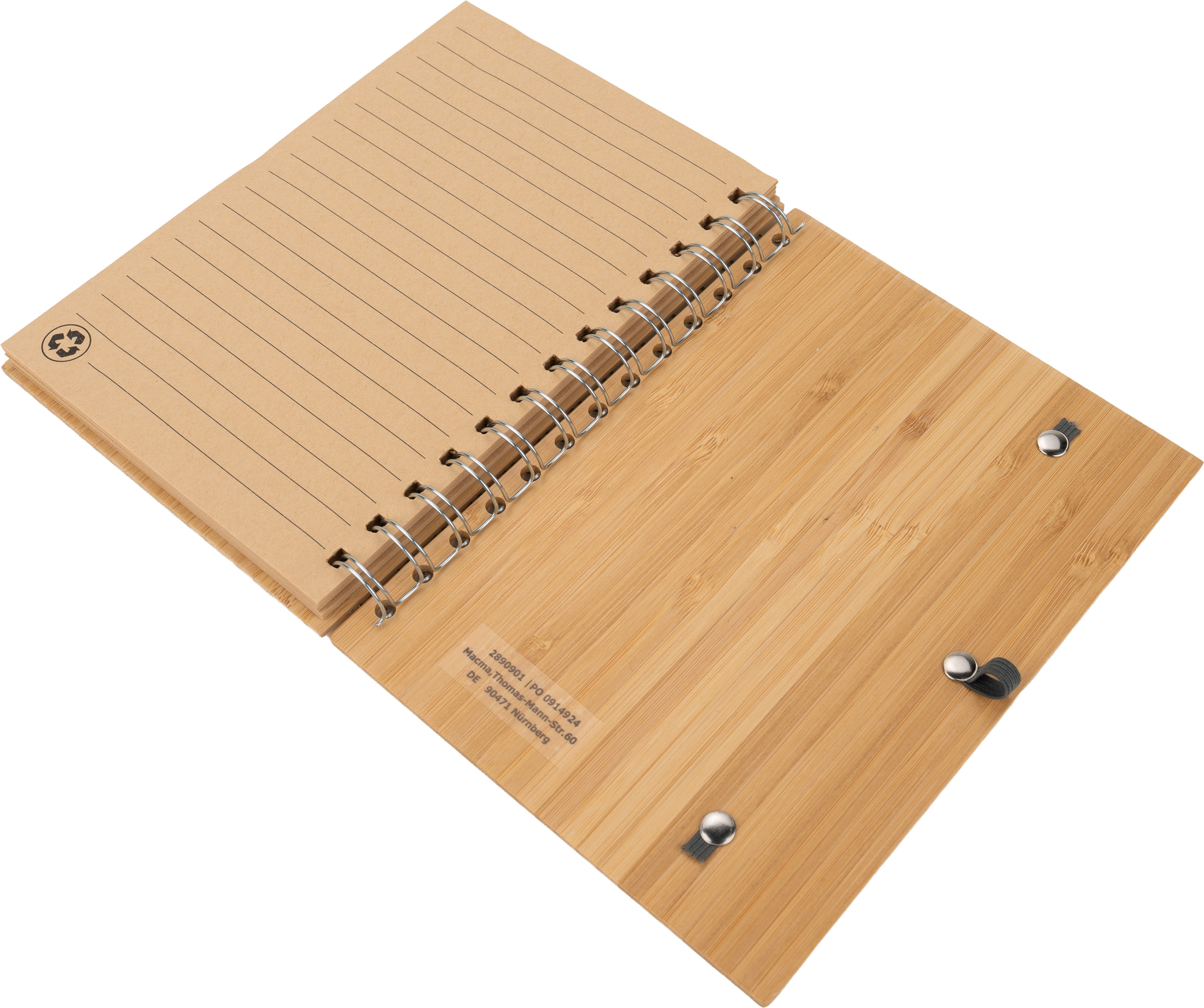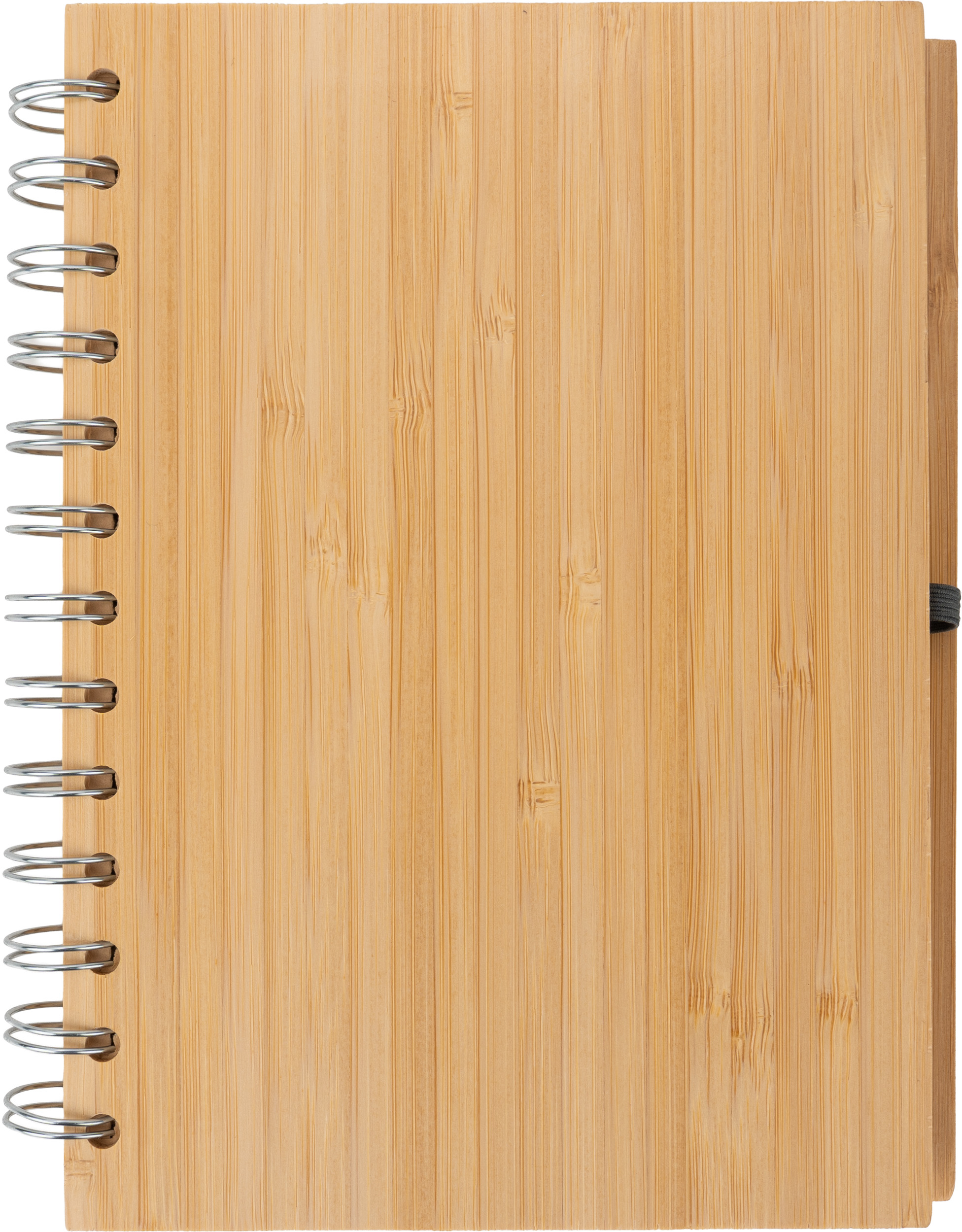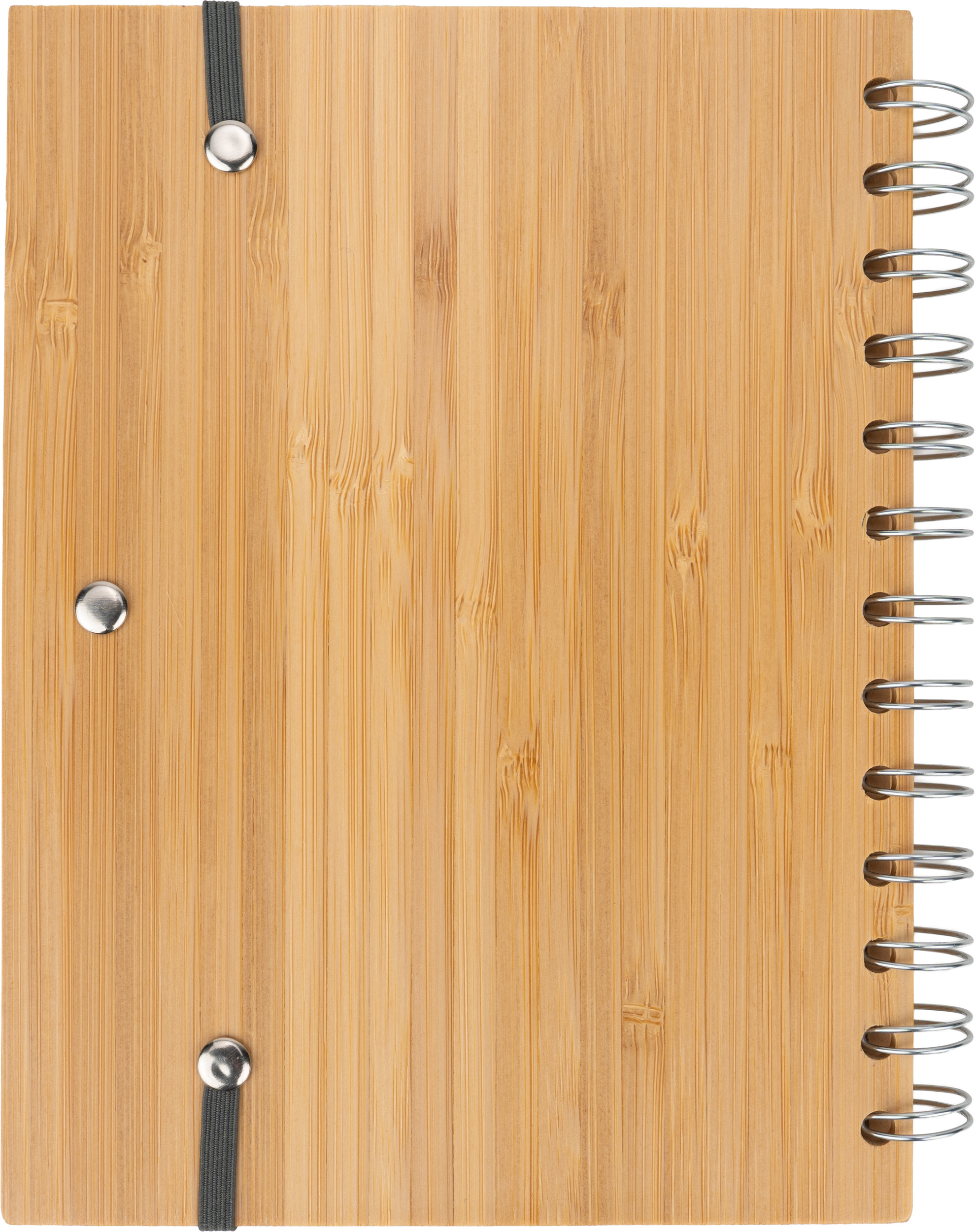 Notes A5 w okładce z bambusa. Zawiera 140 stron z niebielonego papieru w linie pochodzącego z recyklingu, a także bambusowy długopis z niebieskim wkładem.