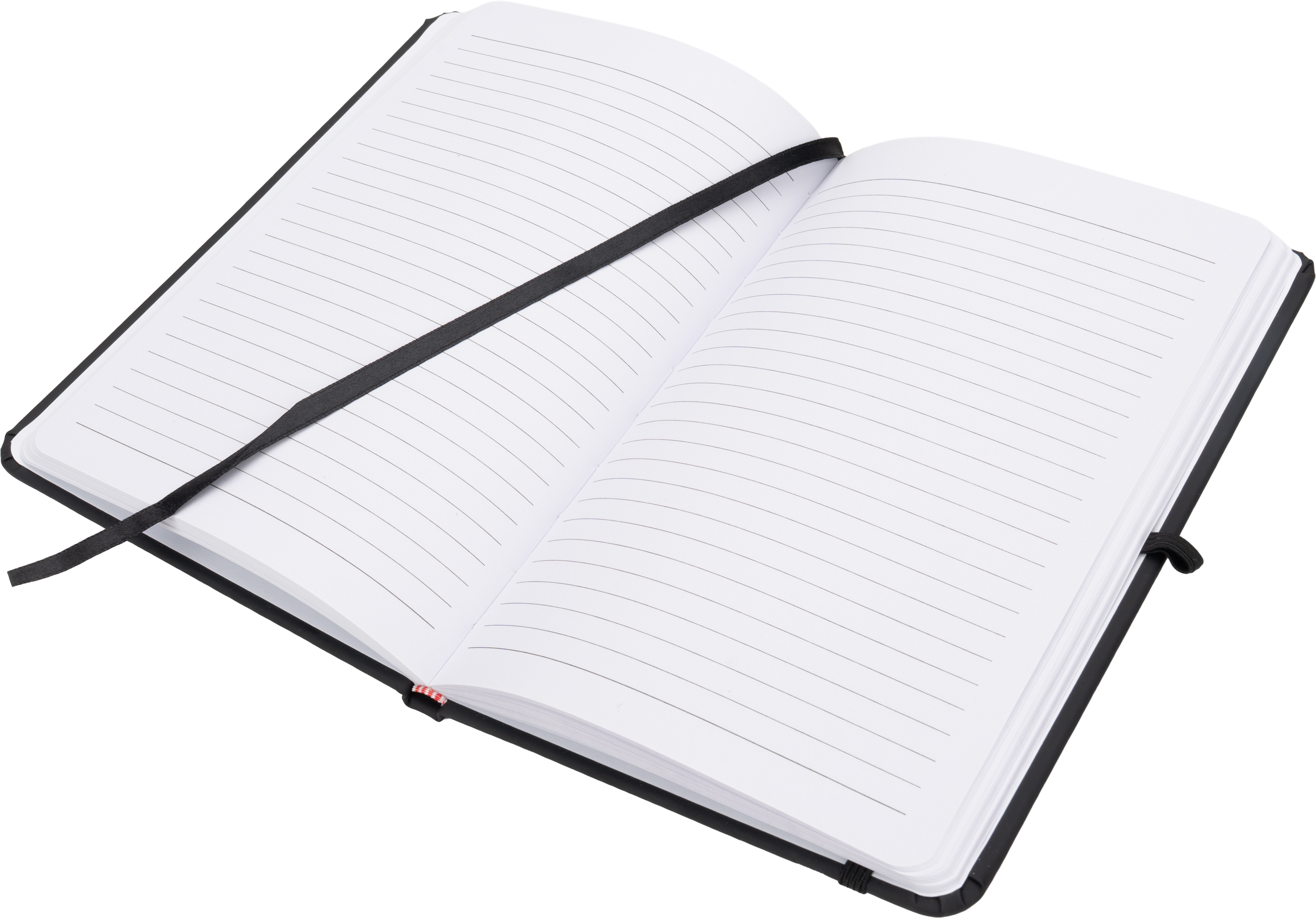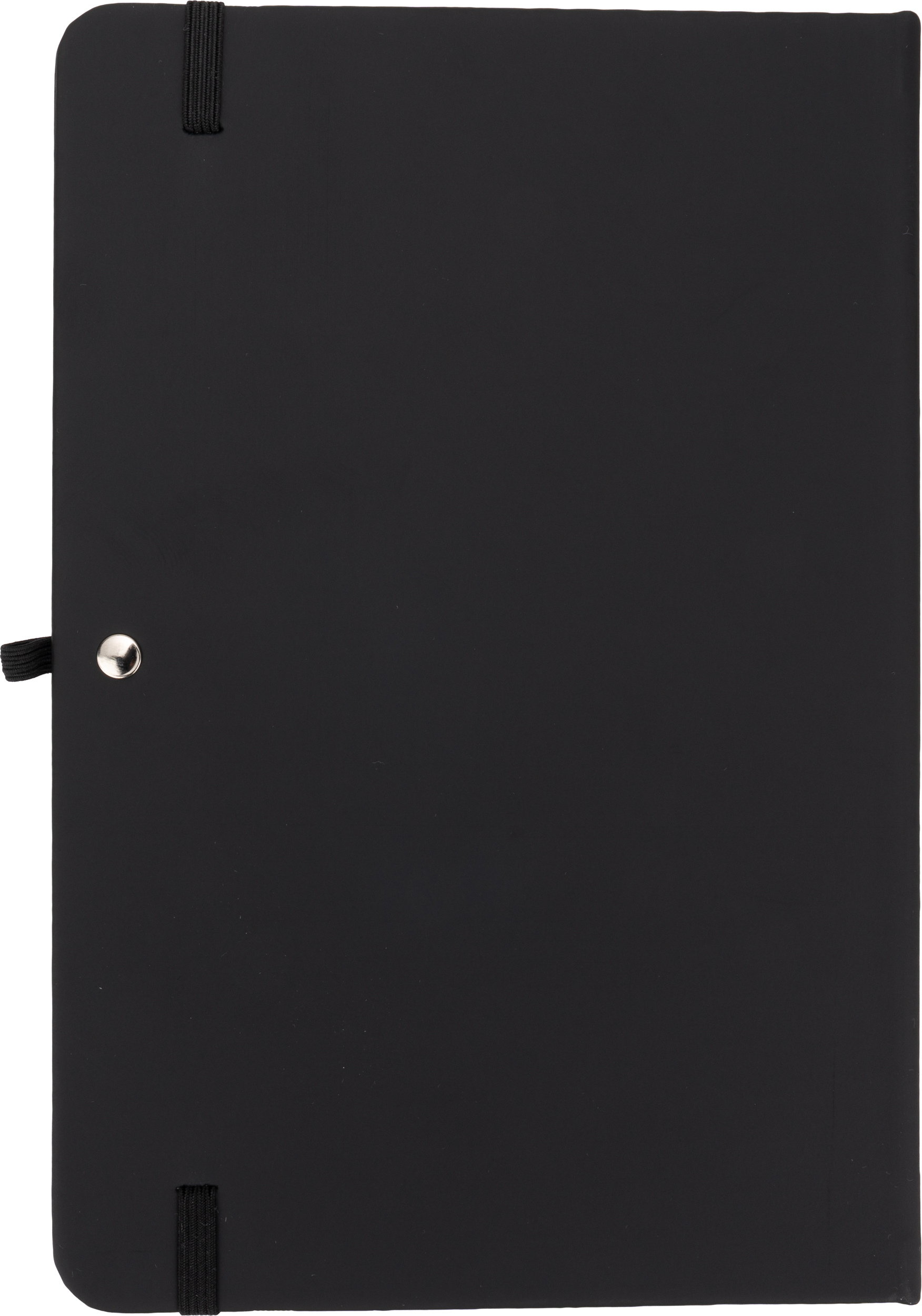 Notes A5 ze 160 stronami w linie. Posiada zakładkę i twardą okładkę z PU z gumką do zamykania.