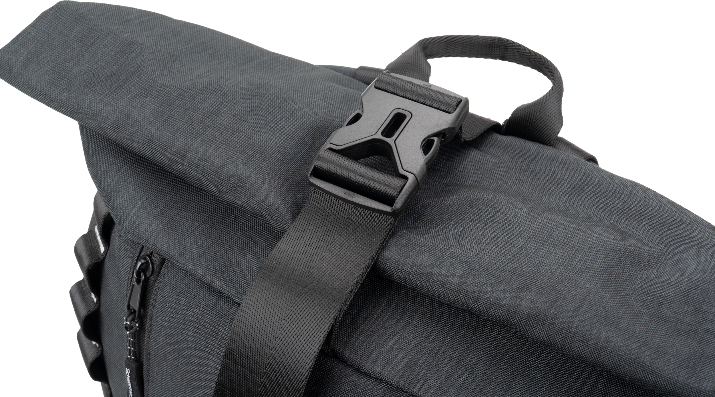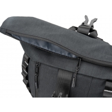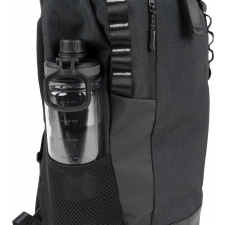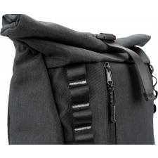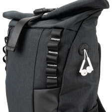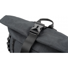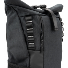 Plecak ze zwijanym zamknięciem, z watowanymi szelkami i plecami, wyposażony w dużą komorę główną z jedną oddzielną kieszenią i mniejszą kieszonką na akcesoria. Z przodu plecaka znajduje się mała kieszonka zamykana na zamek, po bokach dwie siatkowe kieszenie i jedna mała kieszonka z tyłu. Po zrolowaniu górnej części plecaka całość zamykamy dwoma paskami z plastikowymi klamerkami - tak zamknięty plecak będzie miał pojemność 25l. Plecak można również zamknąć bez rolowania, na zamek błyskawiczny - wtedy pomieści 32l.