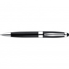 Długopis metalowy z mechanizmem obrotowym. Posiada duży, niebieski wkład oraz końcówkę do obsługi ekranów dotykowych.