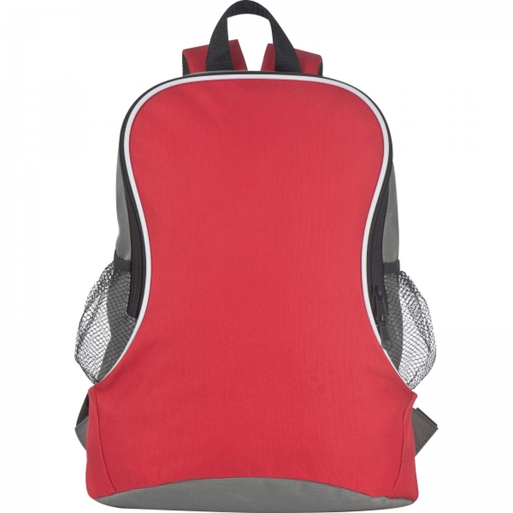 Plecak z poliestru z 2 kieszeniami bocznymi z siatki i wygodnymi, wyściełanymi paskami na ramię.