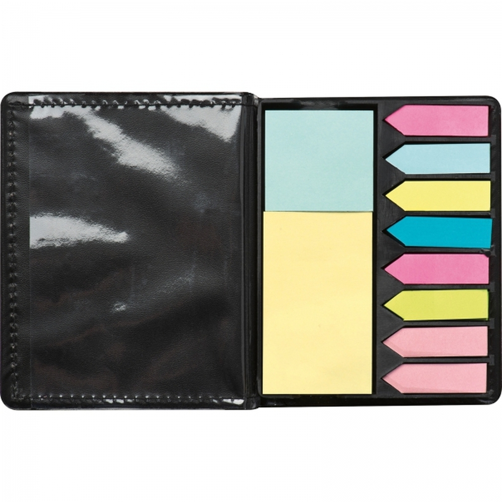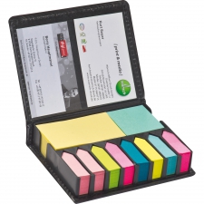 Praktyczny zestaw karteczek złożony z 200 niebieskich i żółtych karteczek oraz 8 mniejszych różnokolorowych bloczków. Całość znajduje się w etui z PU, w którym można również przechowywać np. wizytówki.