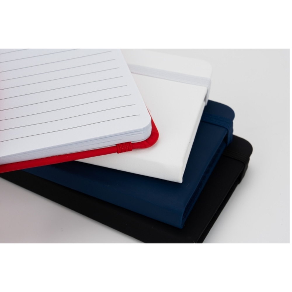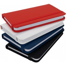 Notes (160 stron) w linie, w twardej oprawie z PU. Posiada tasiemkową zakładkę oraz gumkę umożliwiającą zamknięcie.