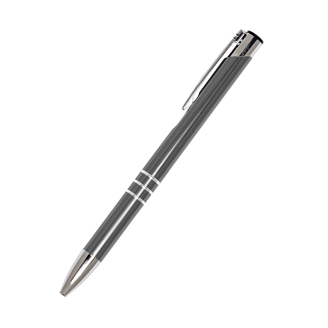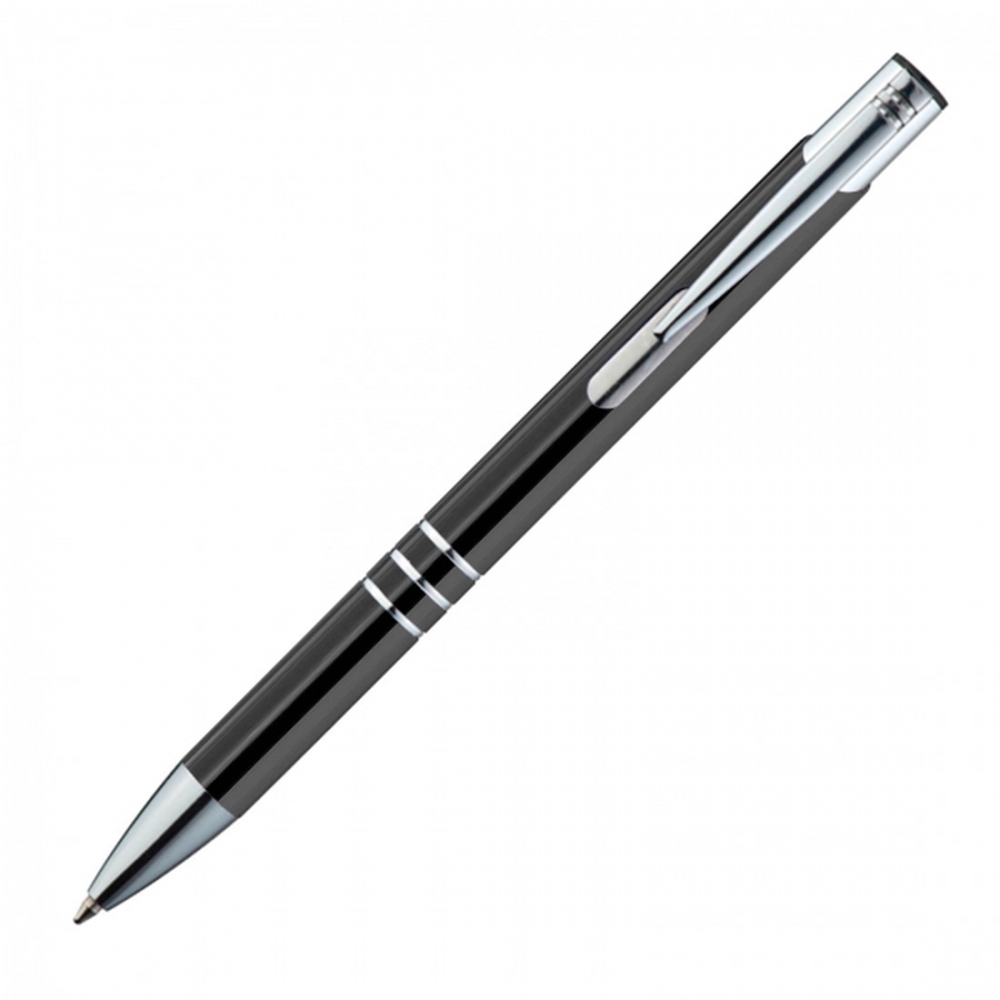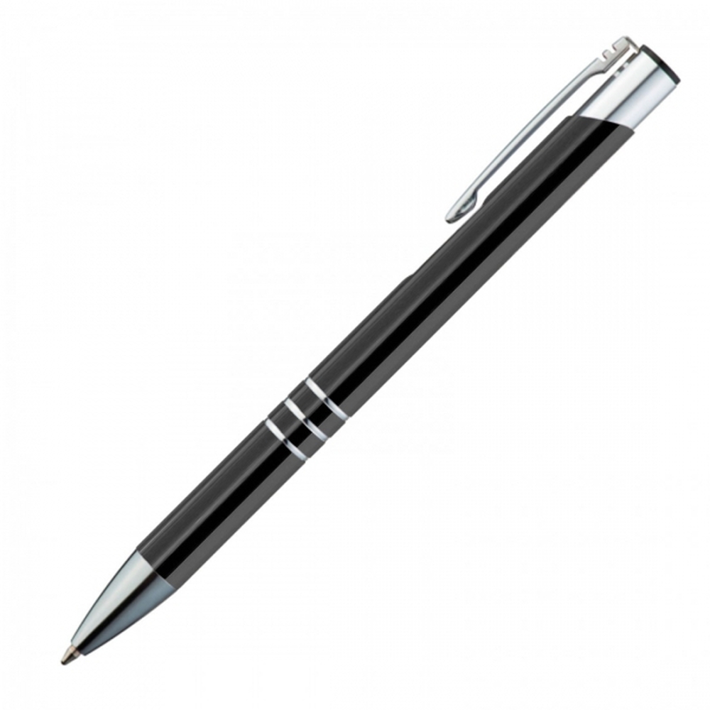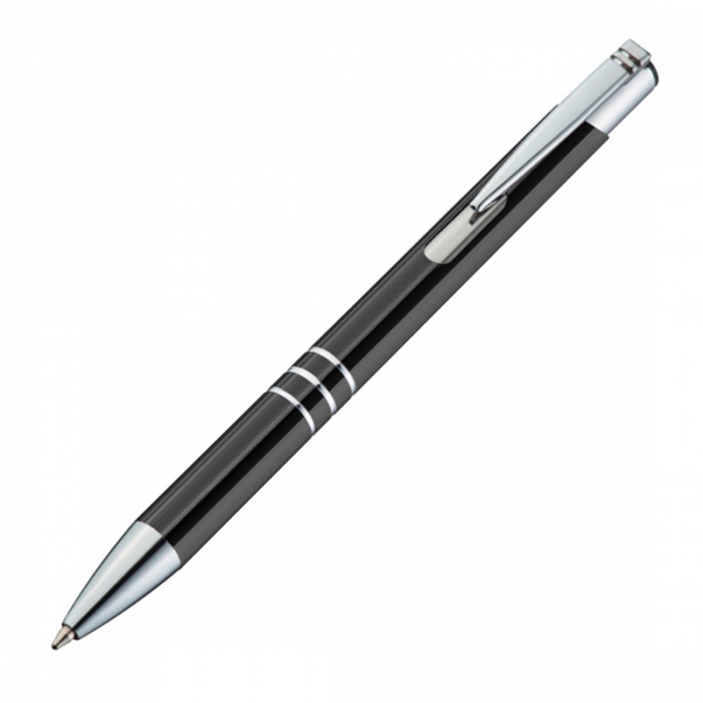 Długopis charakteryzuje się srebrnym wykończeniem klipsu oraz trzema ringami, które elegancko dekorują jego korpus. Żywe, odblaskujące kolory dodają mu nowoczesnego wyglądu i charakteru.