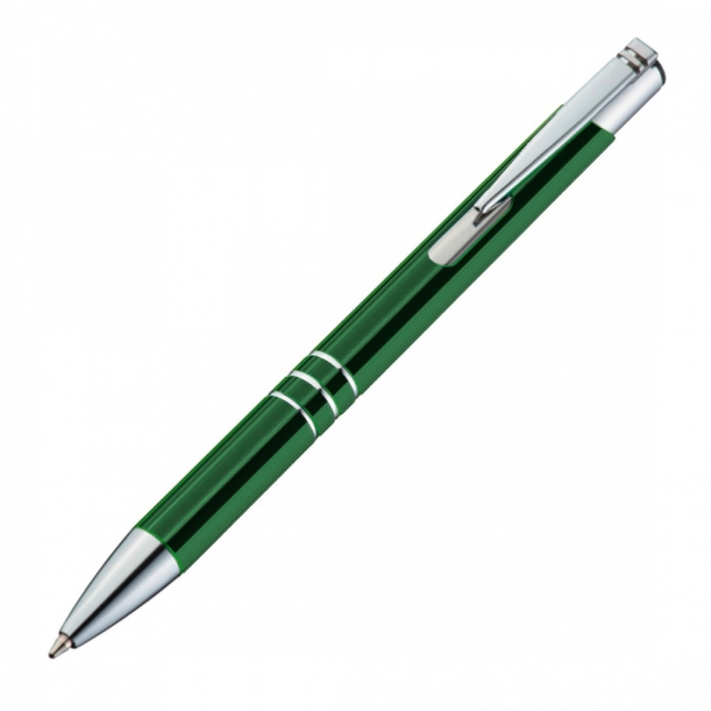Długopis charakteryzuje się srebrnym wykończeniem klipsu oraz trzema ringami, które elegancko dekorują jego korpus. Żywe, odblaskujące kolory dodają mu nowoczesnego wyglądu i charakteru.