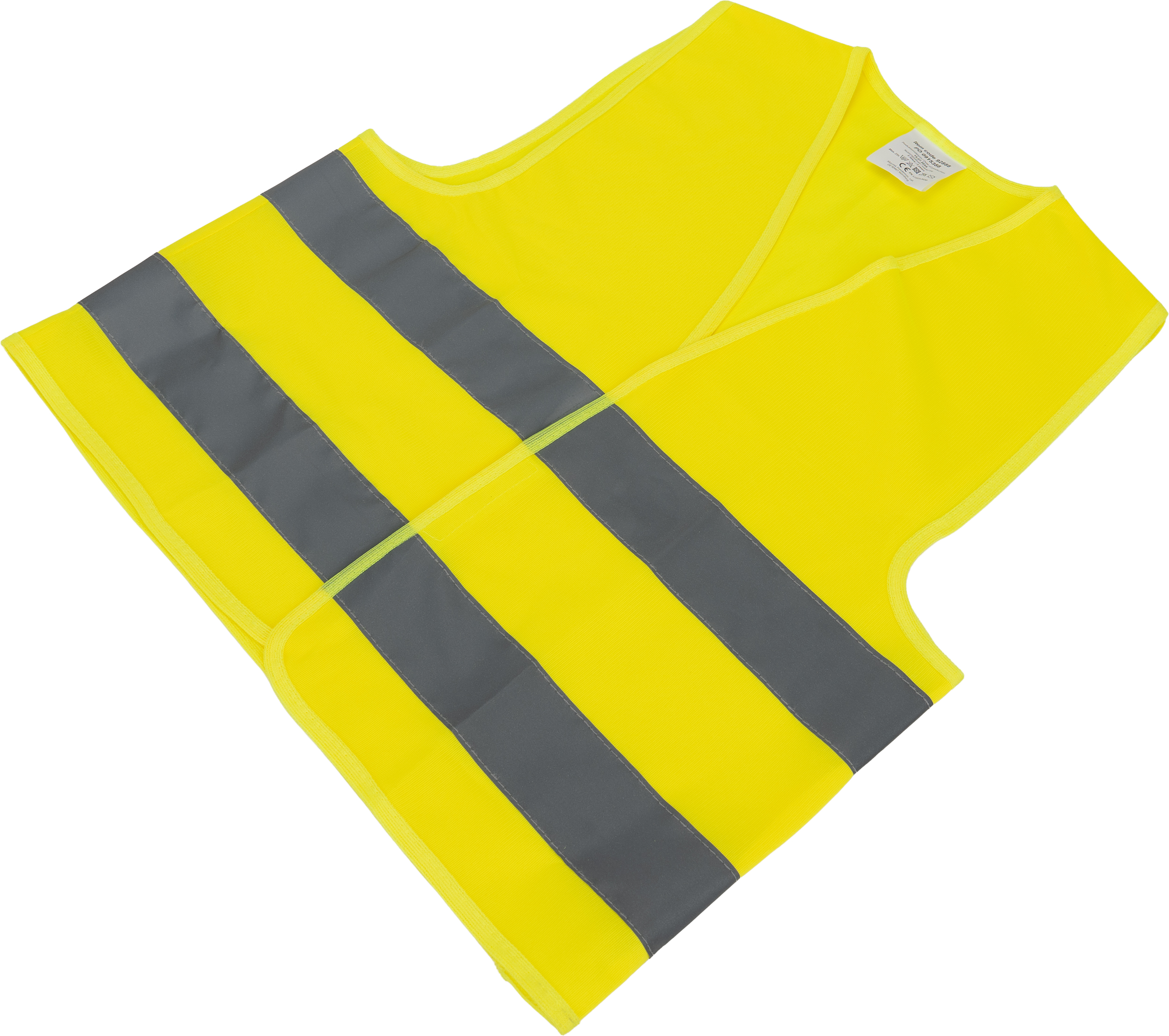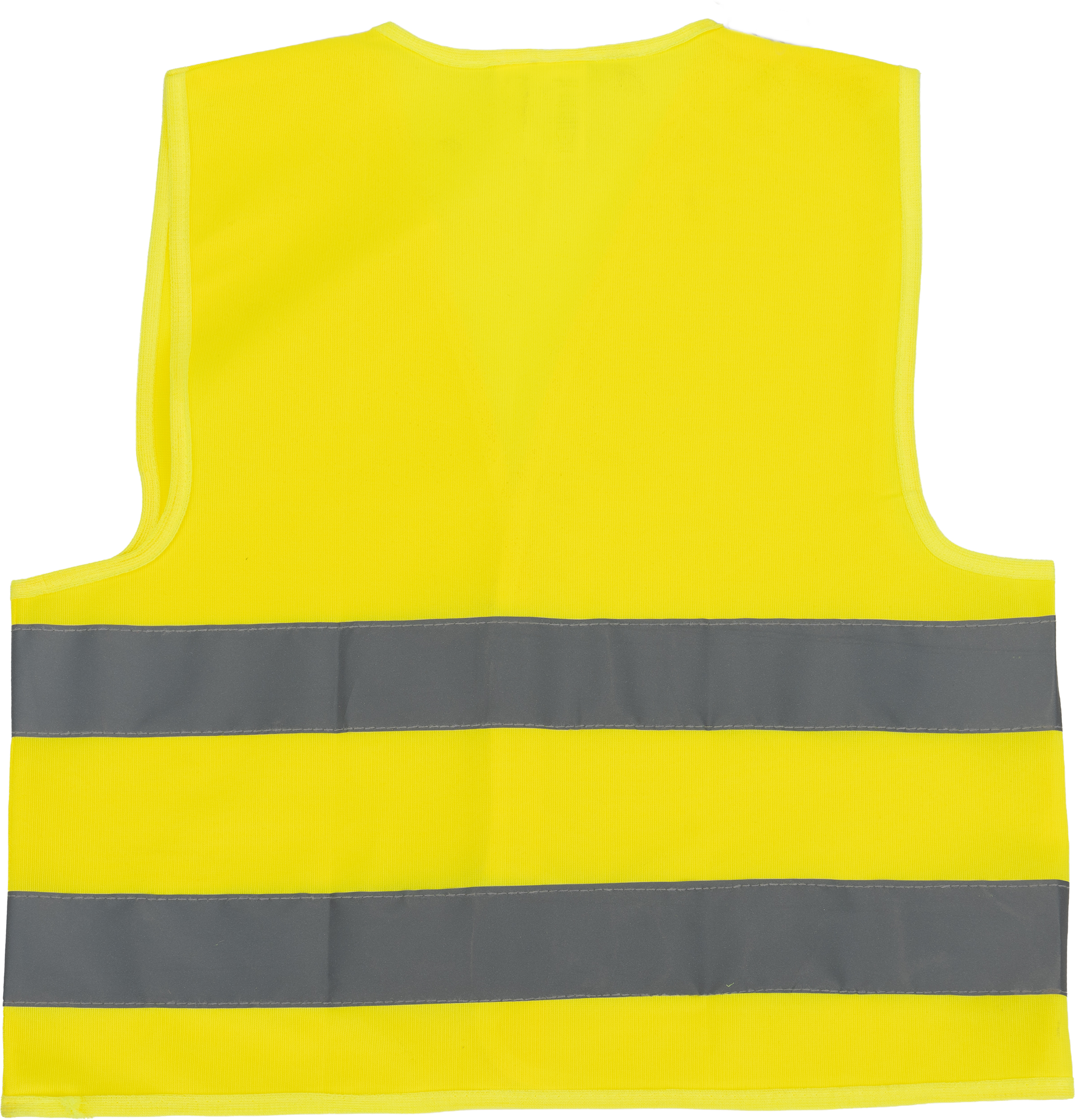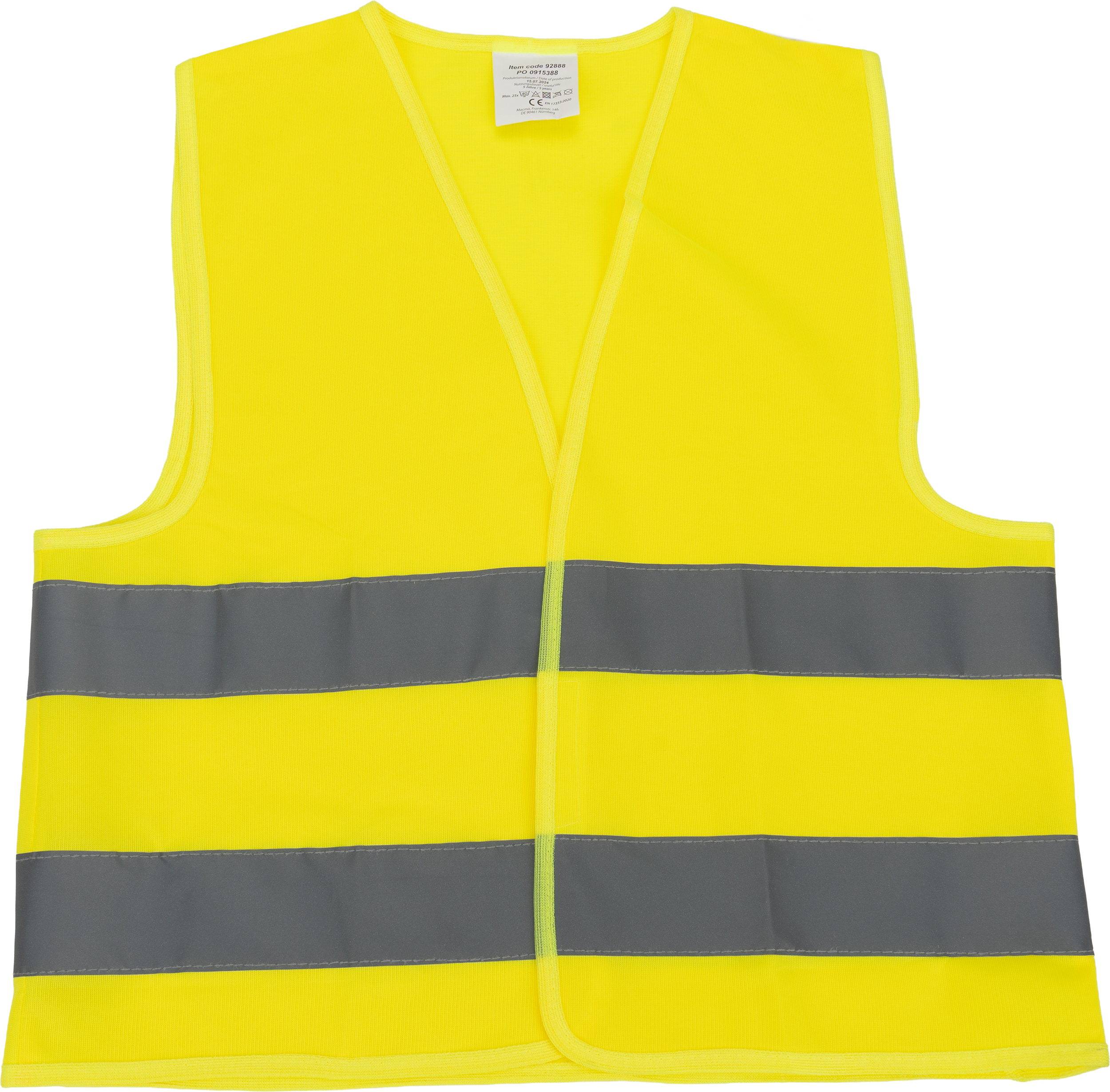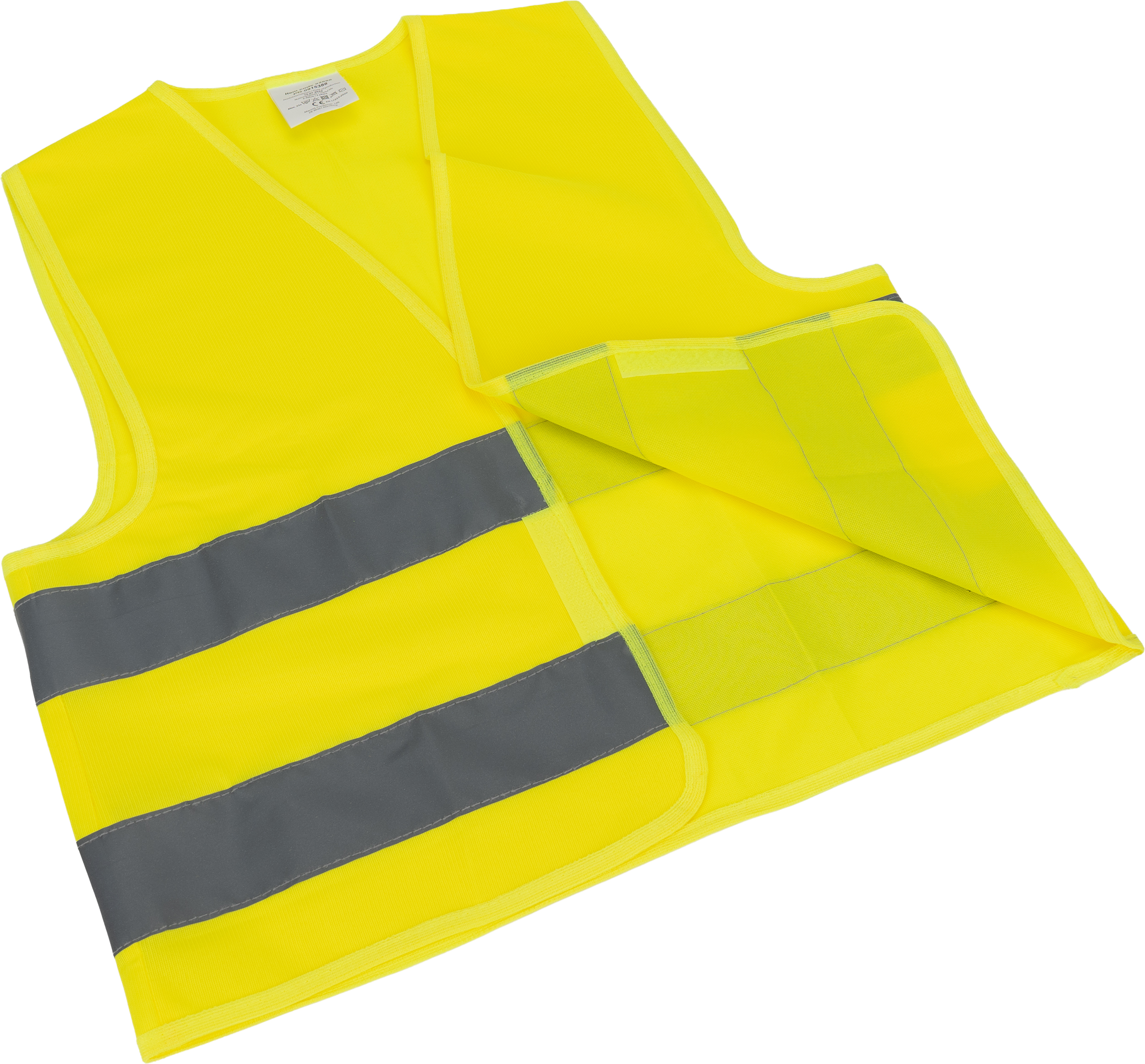 Poliestrowa kamizelka odblaskowa dla dzieci z paskami odbijającymi światło klasy 2, certyfikat EN 1150:1999.