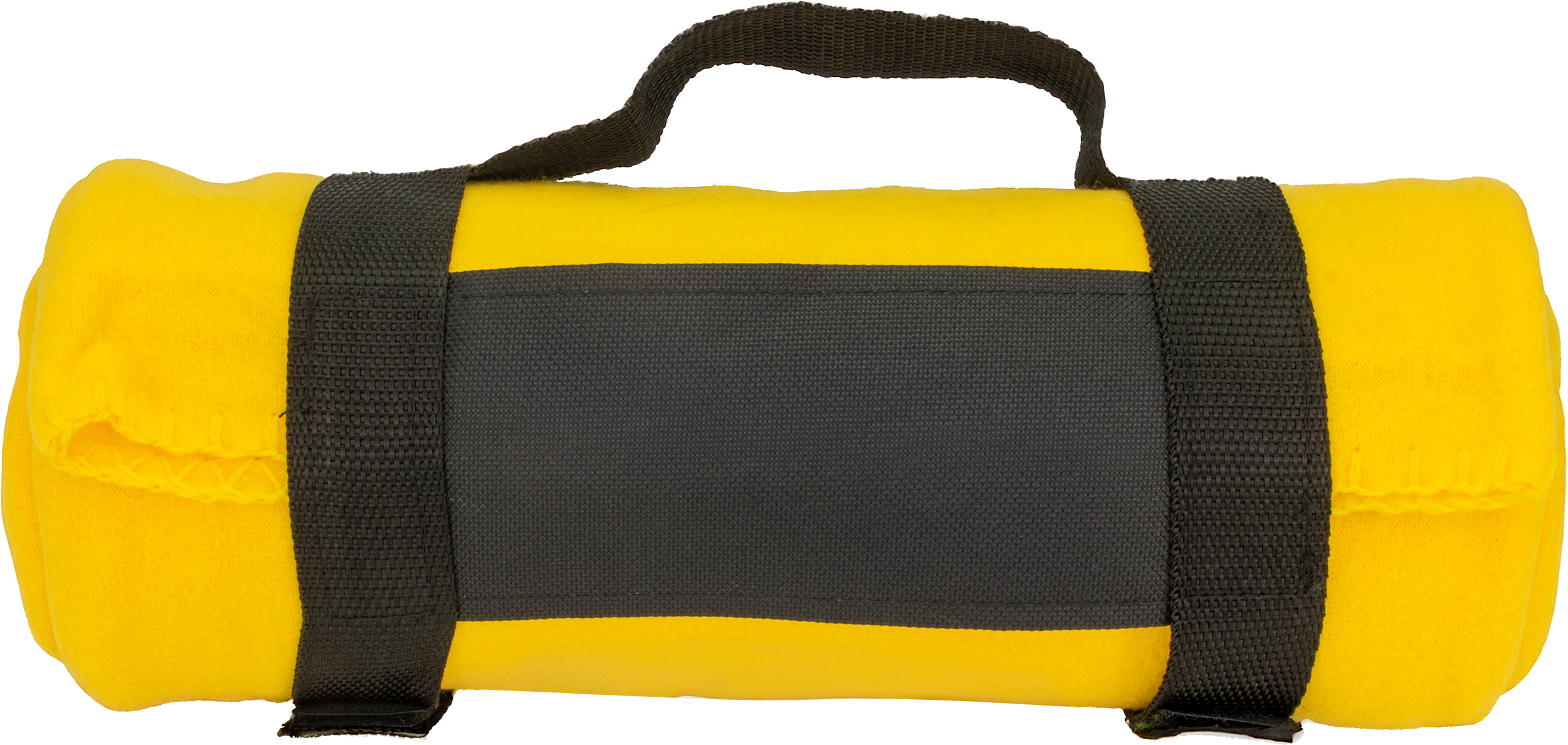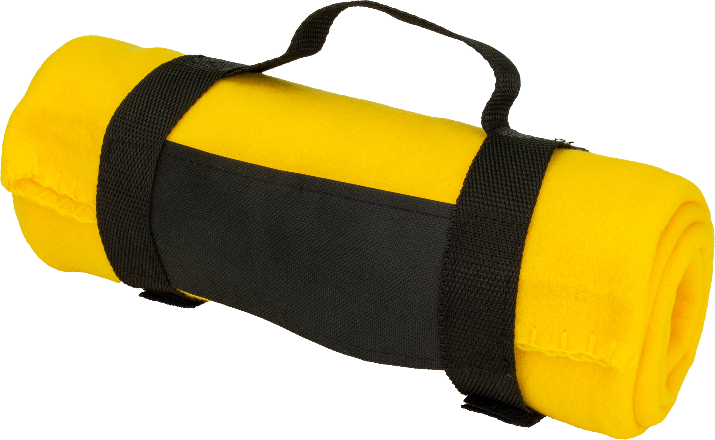Koc z miękkiego polaru. Posiada praktyczny pasek z uchwytami do noszenia. Gramatura 170 g/m².