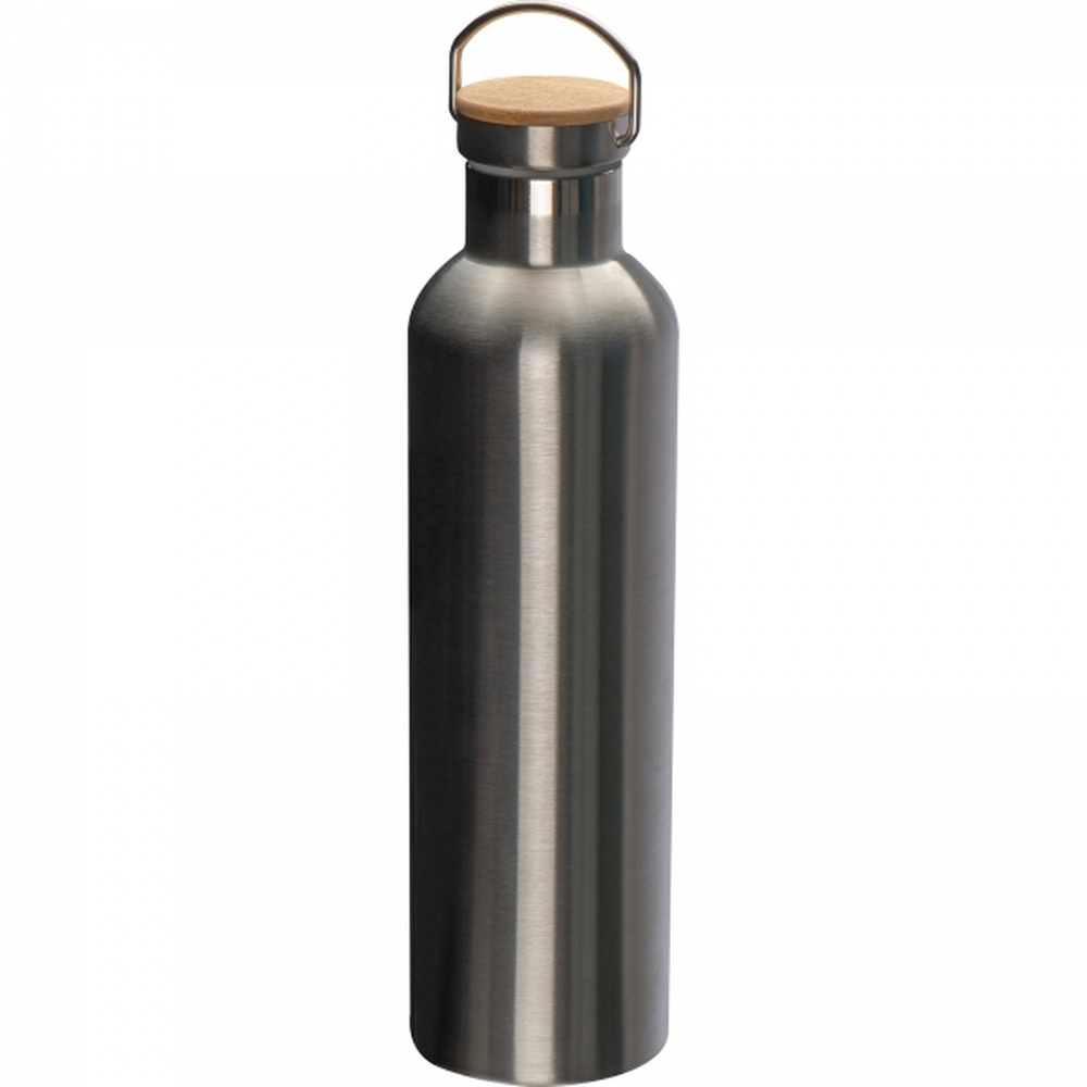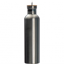 Butelka ze stali nierdzewnej, z podwójnymi ściankami i zamknięciem z bambusowym wieczkiem i rączką do przenoszenia. Pojemność 1000 ml.
