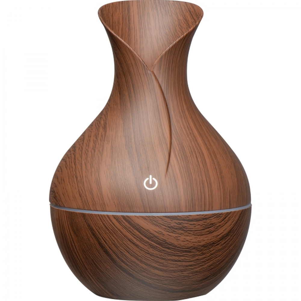 Nawilżacz powietrza w obudowie imitującej drewno, o pojemności 130 ml. Kabelek USB dołączony.