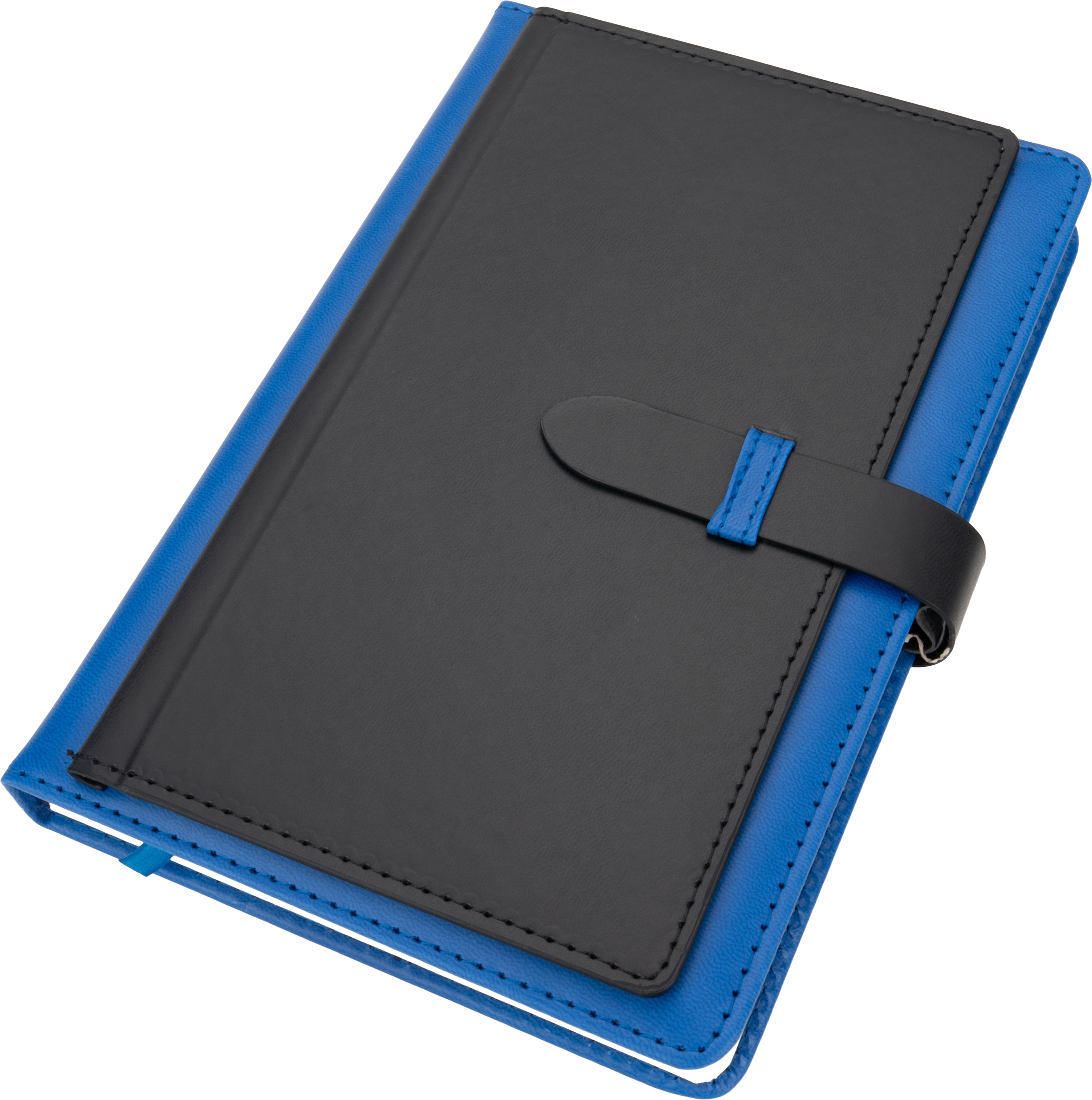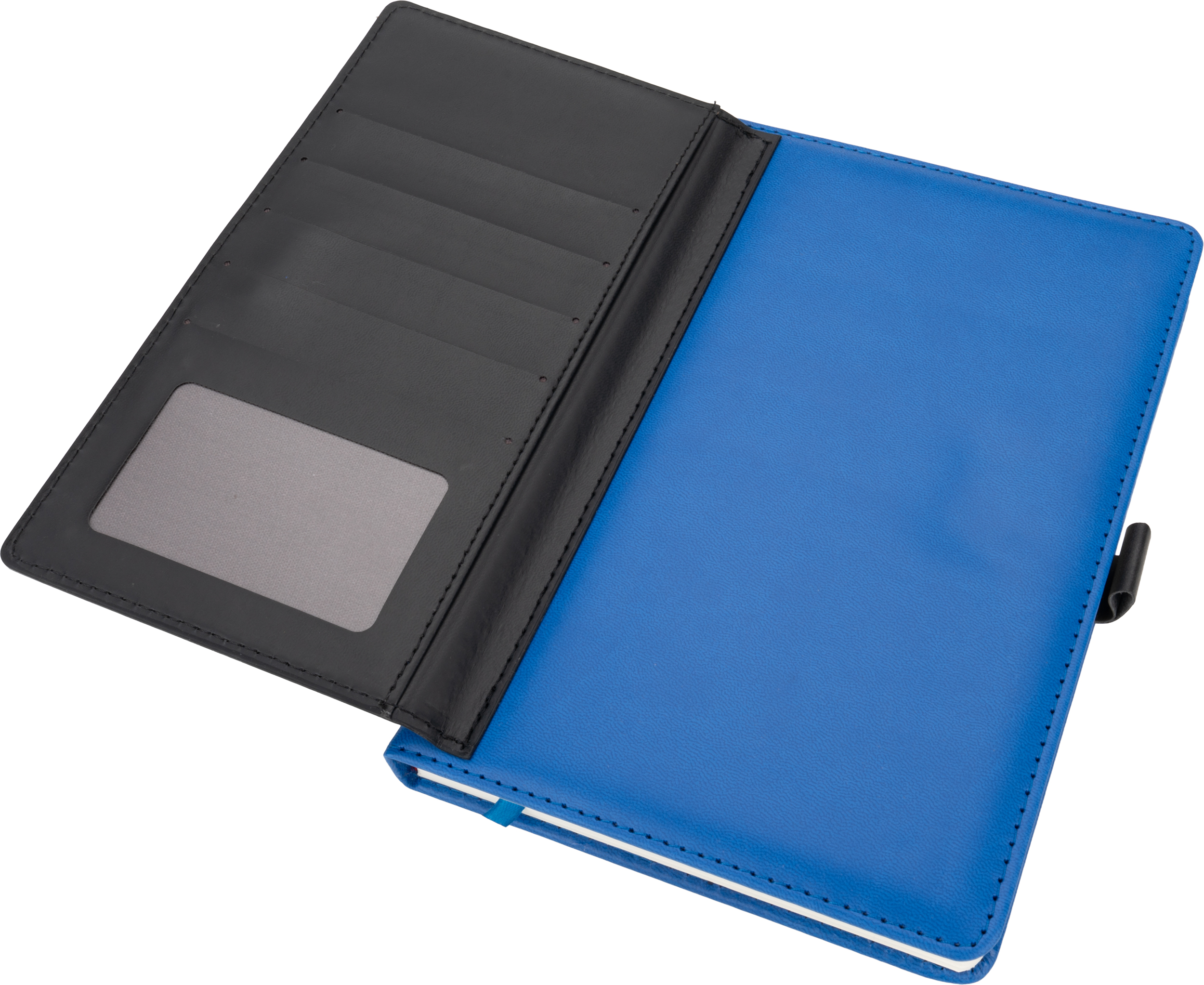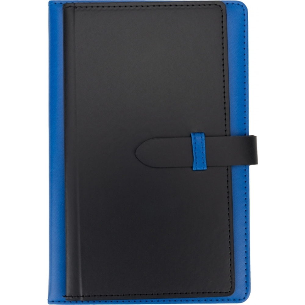 Notatnik A5 w okładce z PU, ze 128 kartkami w linie, miejscem na długopis i wizytownikiem na 5 wizytówek.