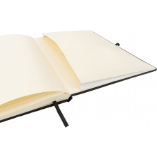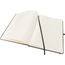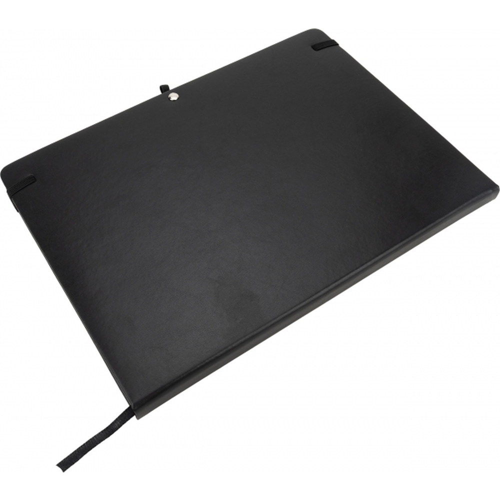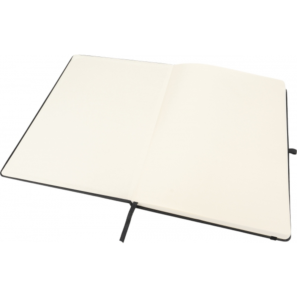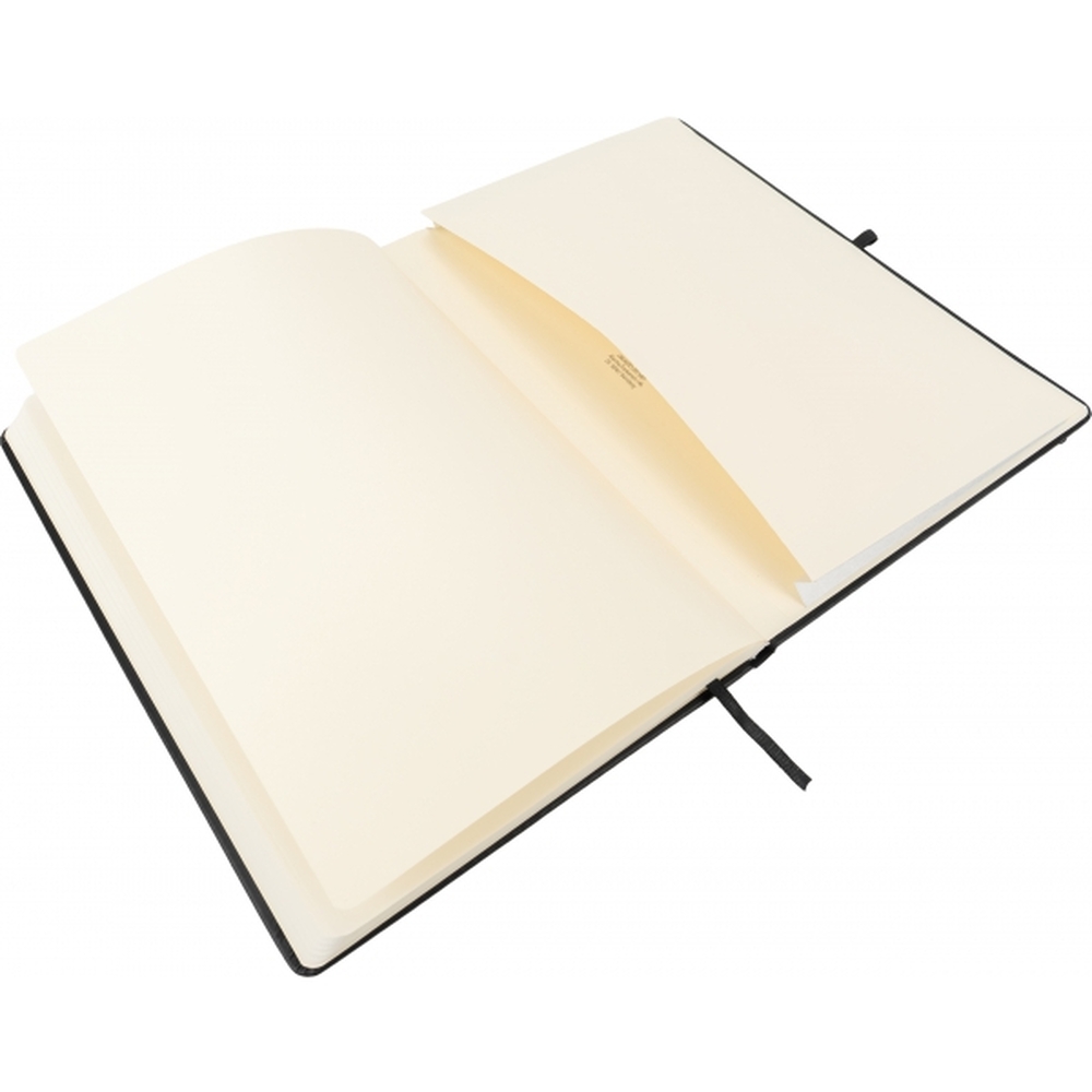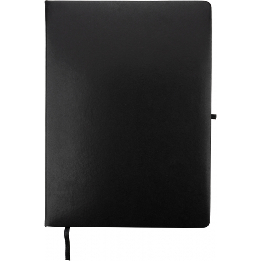 Notes A4 w linie (80 kartek) z okładką z tworzywa sztucznego, zakładką i miejscem na długopis. Zamykany na gumkę.