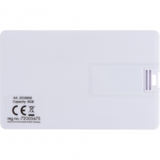 Plastikowy pendrive w kształcie karty kredytowej o pojemności 8GB.