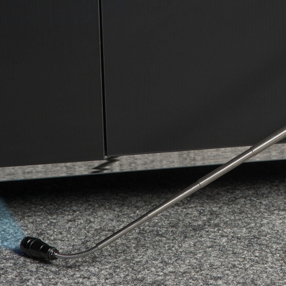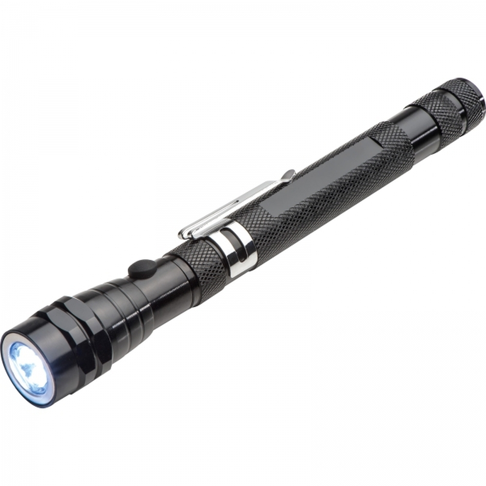 Latarka z 3 diodami LED i teleskopową rączką (dł. 60cm). Posiada głowicę obrotową 360⁰ i magnes, dzięki któremu można przyciągnąć drobne metalowe przedmioty z trudno dostępnych miejsc. Produkt zawiera baterie.