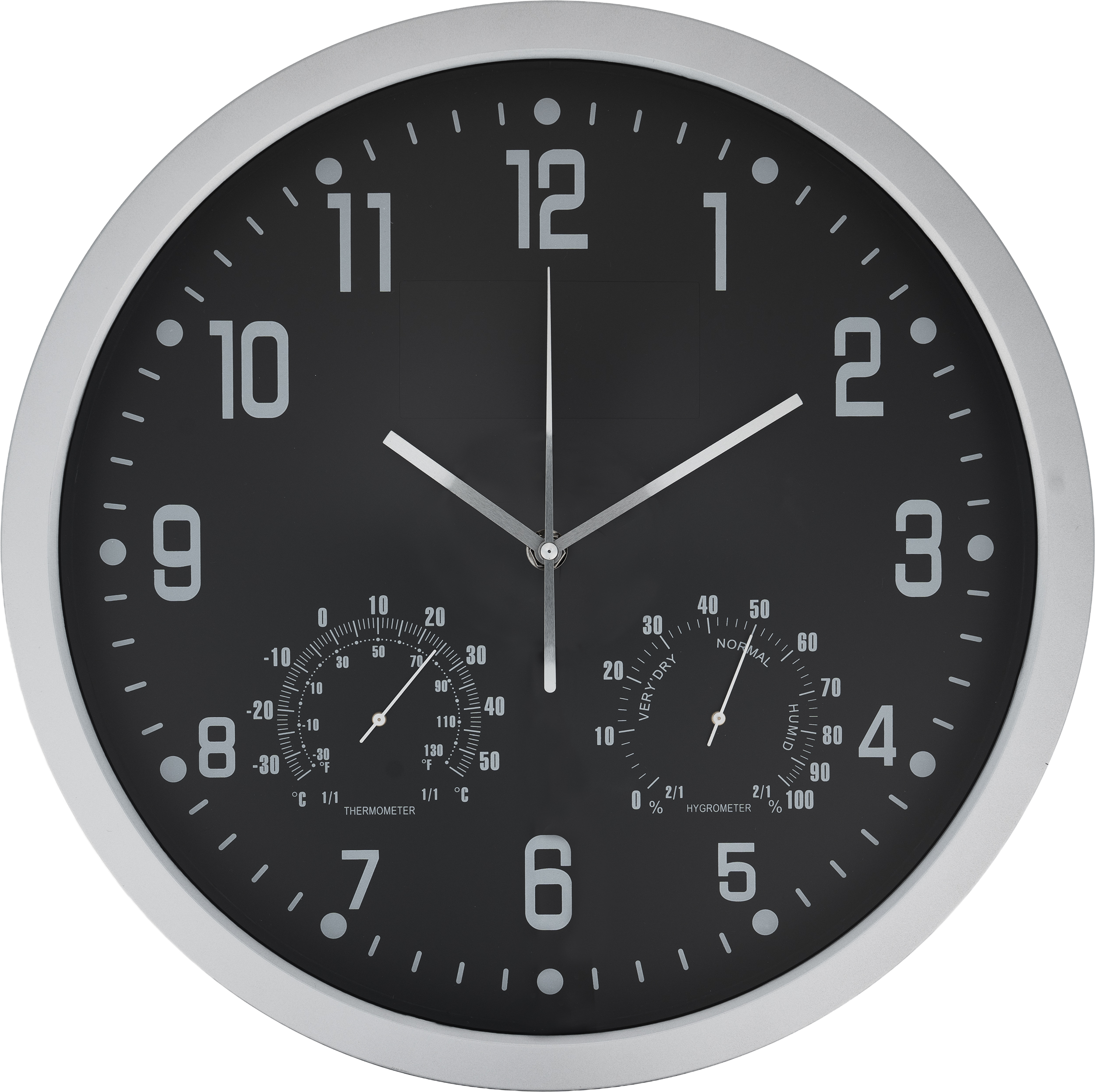 Zegary firmy CrisMa cechuje wysoka wytrzymałość i elegancki wygląd. Ten model, oprócz wskazywania godzin, pokazuje temperaturę oraz wilgotność powietrza. Estetyczna i wytrzymała obudowa, cichy mechanizm zasilany wyłącznie jedną bateria AA. Brak baterii w zestawie.