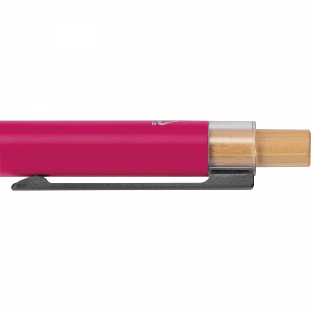 Długopis wykonany z aluminium pochodzącego z recyklingu, z niebieskim wkładem i bambusowym przyciskiem. Długopis wykonano z solidnego materiału, a dzięki odpowiedniemu ciężarowi, jest wyjątkowo wytrzymały i dobrze wyważony w dłoni. Powłoka długopisu gładka w dotyku, matowa.