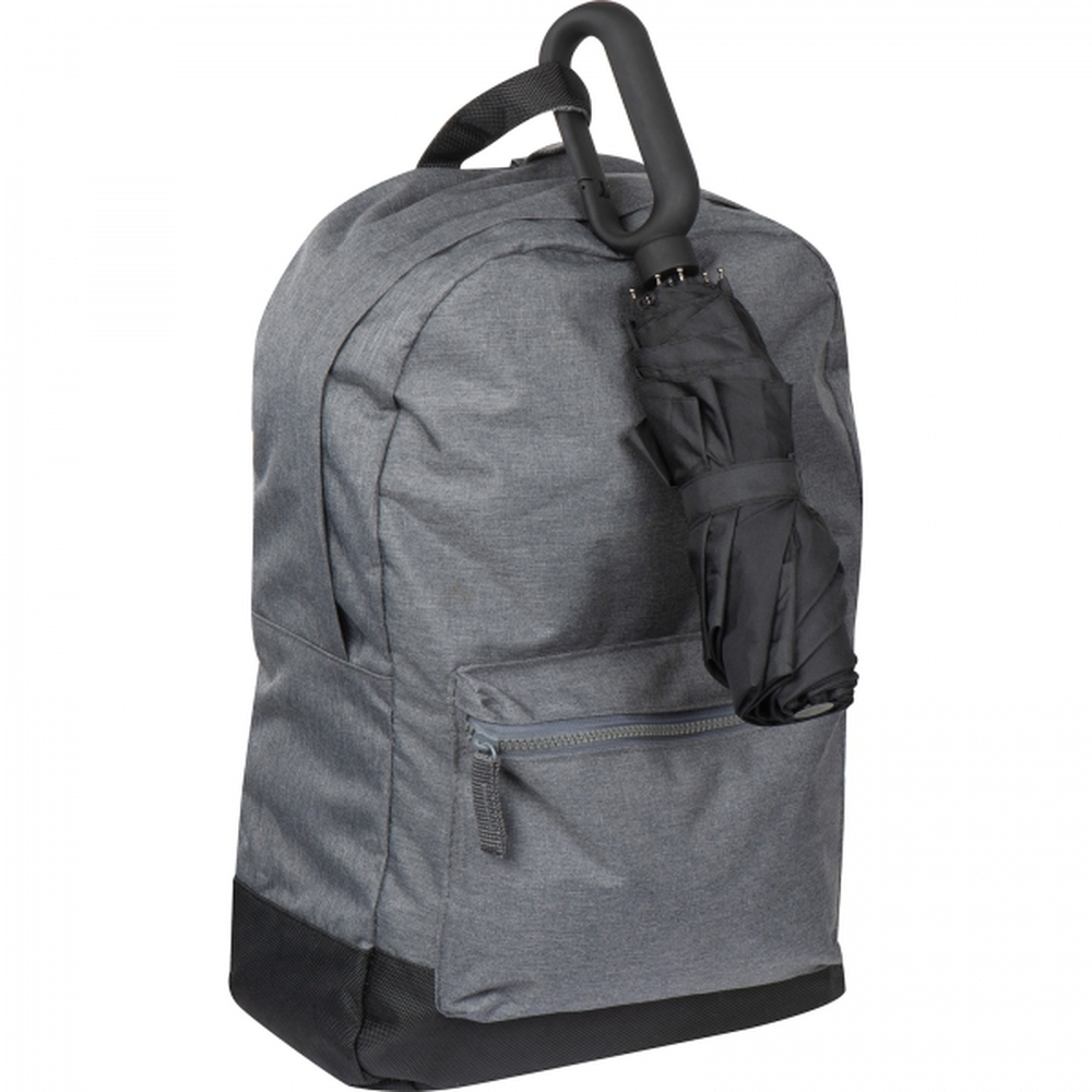 Nity parasola wykonane są z włókna szklanego, co dodaje mu wytrzymałości i odporności na wiatr. Praktyczna rączka w formie karabińczyka ułatwia stabilny chwyt i dzięki temu zapobiega wyfrunięciu parasola z dłoni przy wietrznej pogodzie. To jednocześnie praktyczny dodatek, który umożliwia wygodne noszenie parasola przy sobie, przymocowanego do plecaka, torebki, czy pasa.