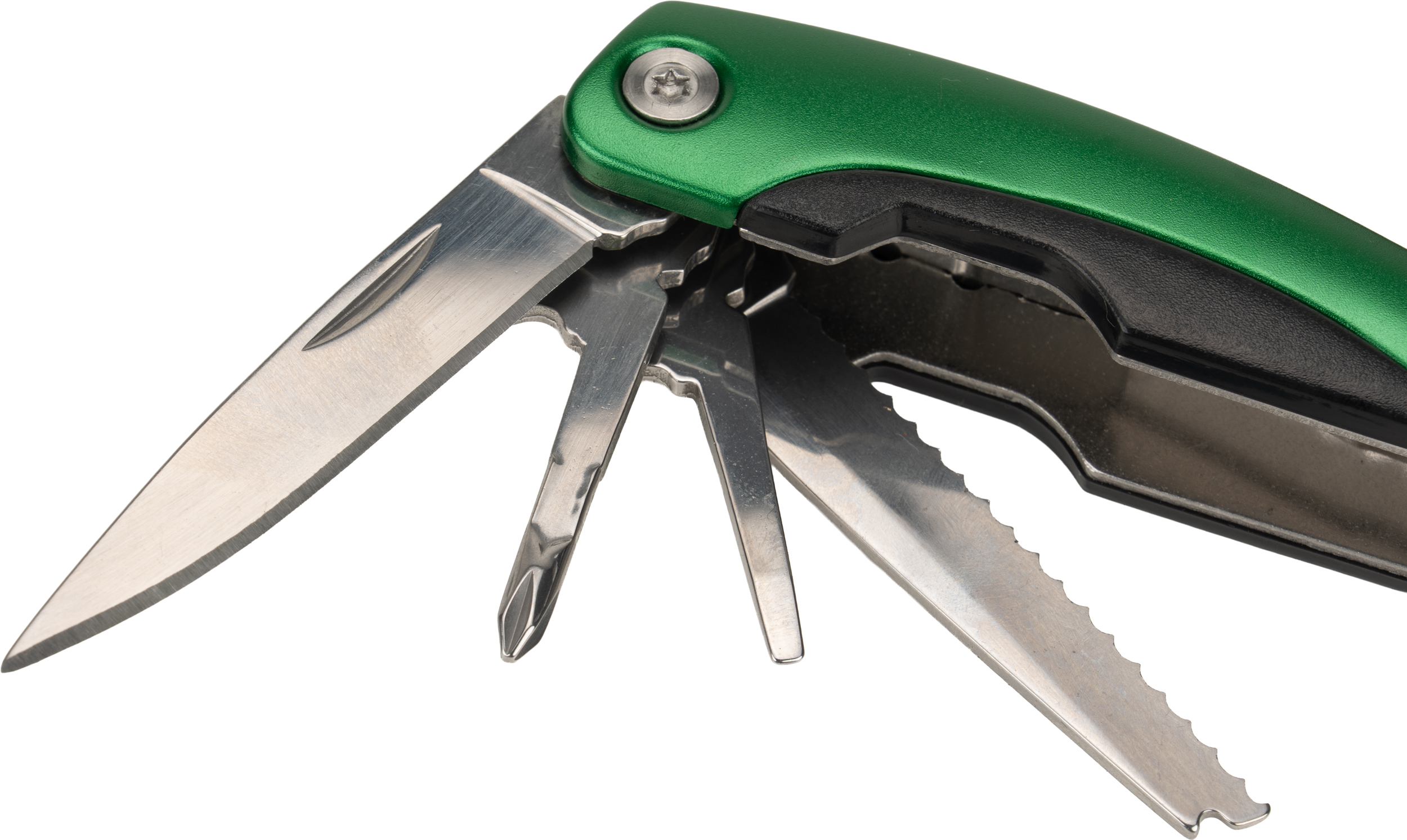 ARMADOR NEW to solidny gadżet reklamowy idealny dla miłośników outdooru i nie tylko! Ten wszechstronny multitool wyposażony jest w 15 różnych narzędzi i łączy w sobie funkcjonalność, trwałość oraz wygodę użytkowania. Multitool Armador oferuje szeroki wachlarz narzędzi, w tym: kombinerki, pilnik, śrubokręt płaski i Philips, nóż, piłkę, otwieracz do butelek i konserw.