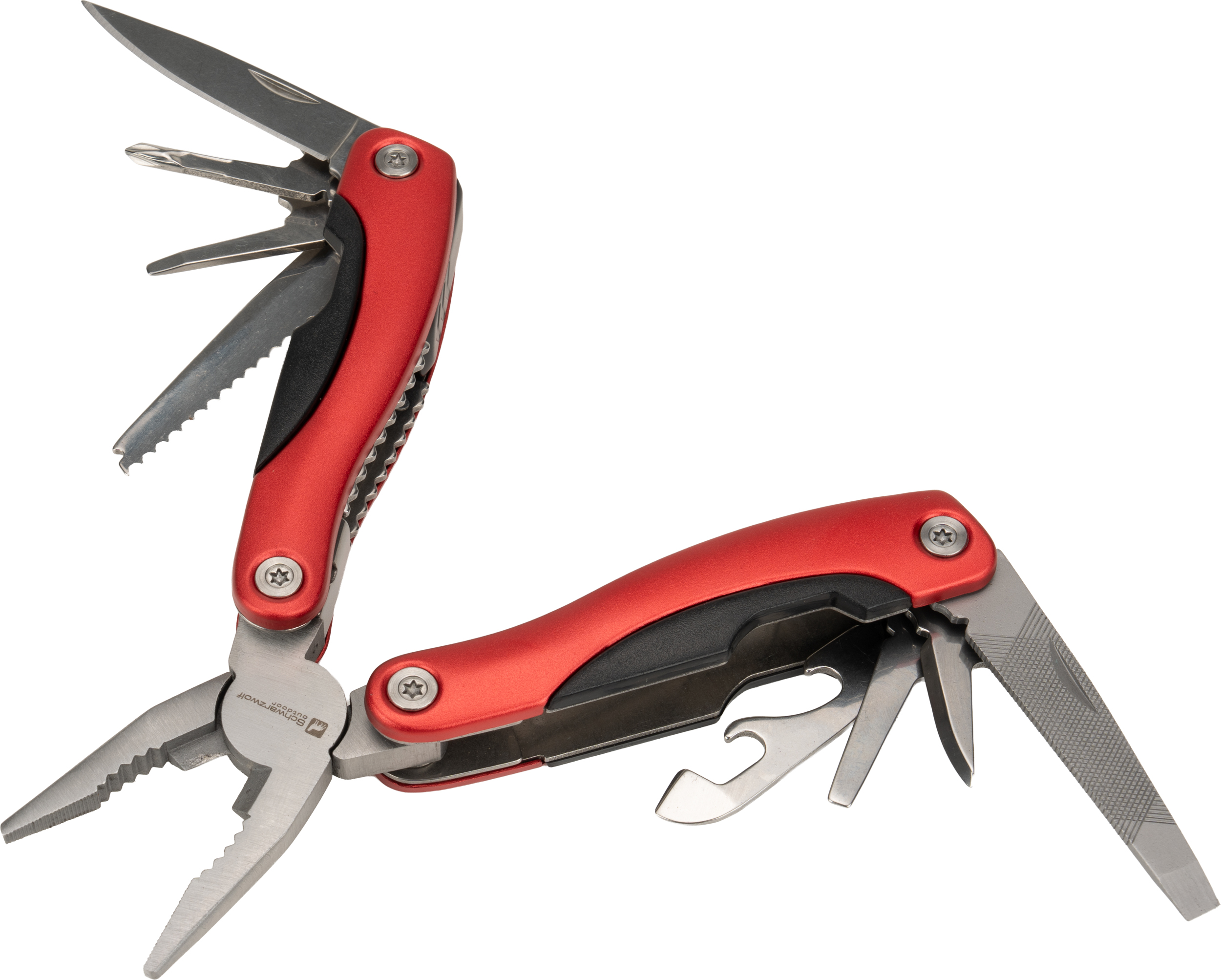 ARMADOR NEW to solidny gadżet reklamowy idealny dla miłośników outdooru i nie tylko! Ten wszechstronny multitool wyposażony jest w 15 różnych narzędzi i łączy w sobie funkcjonalność, trwałość oraz wygodę użytkowania. Multitool Armador oferuje szeroki wachlarz narzędzi, w tym: kombinerki, pilnik, śrubokręt płaski i Philips, nóż, piłkę, otwieracz do butelek i konserw.