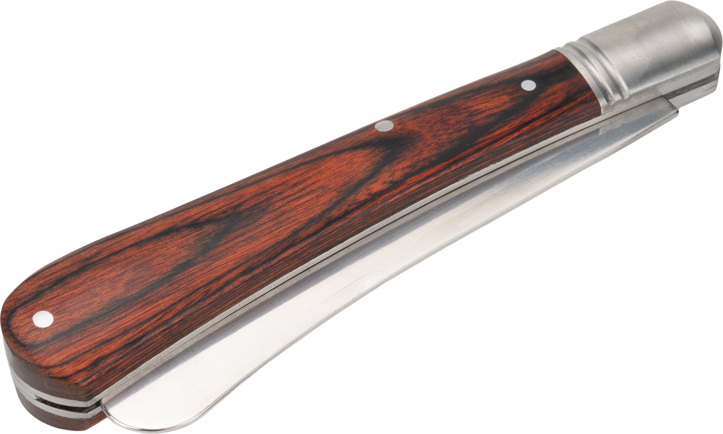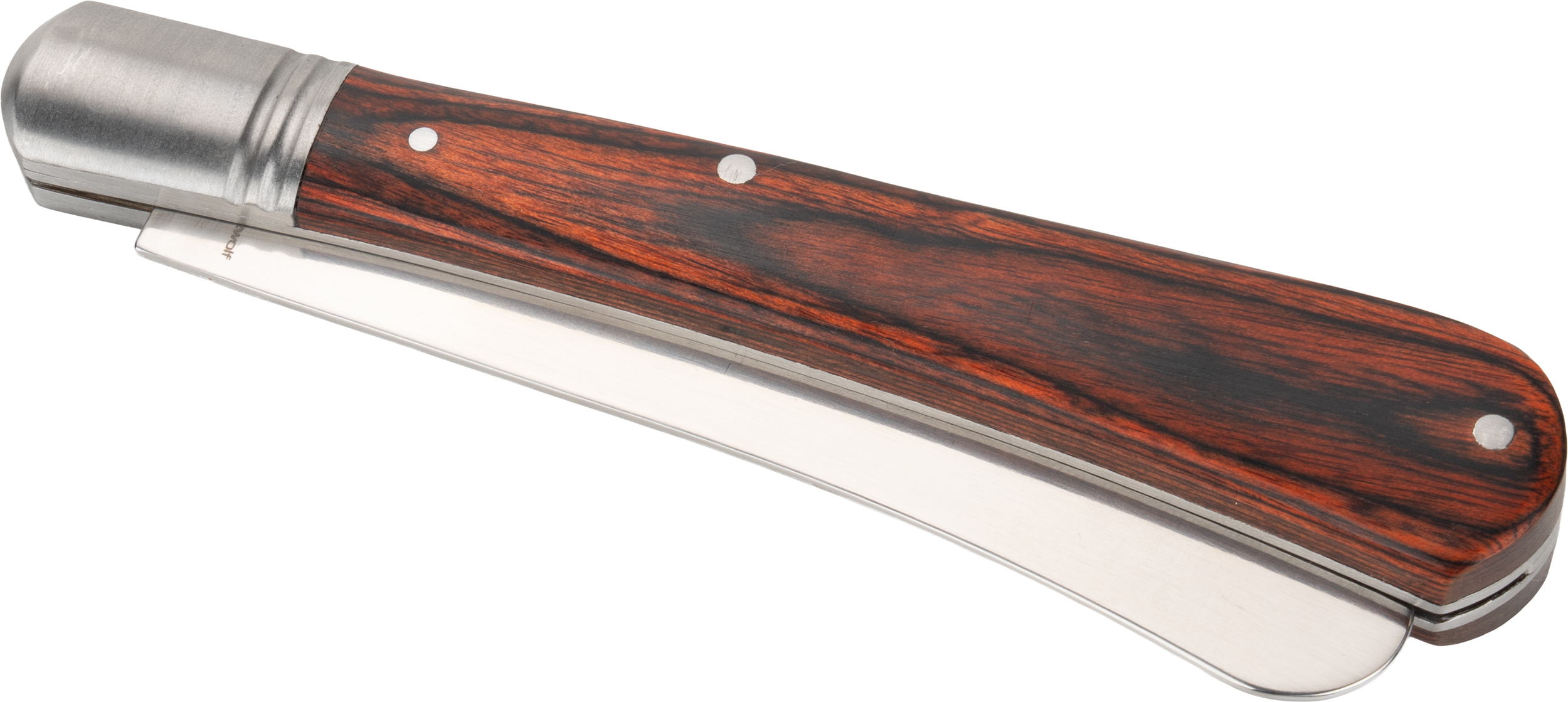 Składany nóż do masła, wykonany ze stali nierdzewnej, z drewnianą rękojeścią. Przydatny podczas podróży.