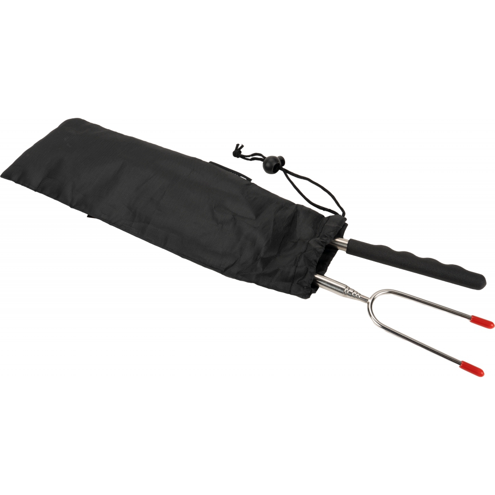 Praktyczny zestaw dwóch teleskpowych kijków do pieczenia kiełbasy, idealny na ognisko. Zapakowane w nylonowy pokrowiec ze ściągaczem - 29 x 10 x 1 cm. Materiał: stal nierdzewna, rękojeść PVC.