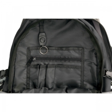 Plecak posiada watowane plecy i szelki z uchwytami, praktyczną kieszeń z zabezpieczeniem na laptop, dwie kieszenie na butelki, taśmy kompresyjne, kieszeń na buty, kieszeń wewnętrzną z przedziałką na drobiazgi oraz karabińczyk. Materiał: 300D nylon, dobby nylon, 210D poliester. Pojemność: 27 l.