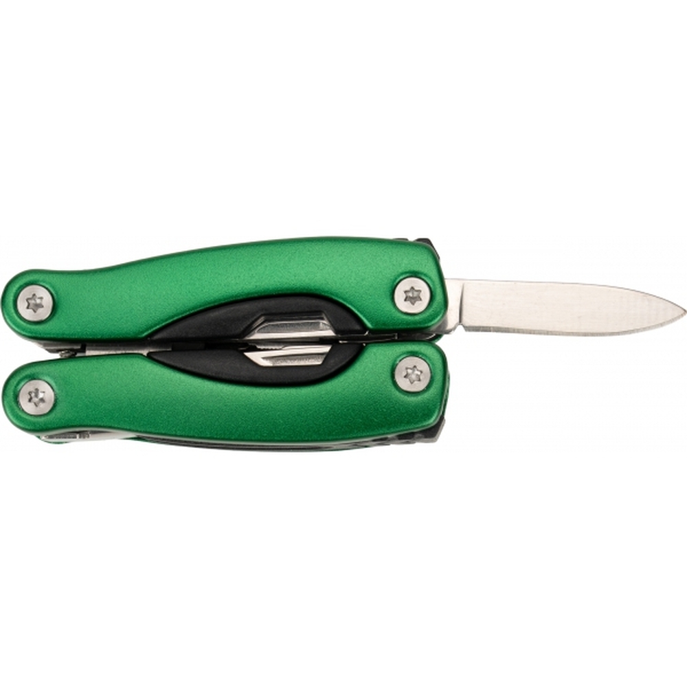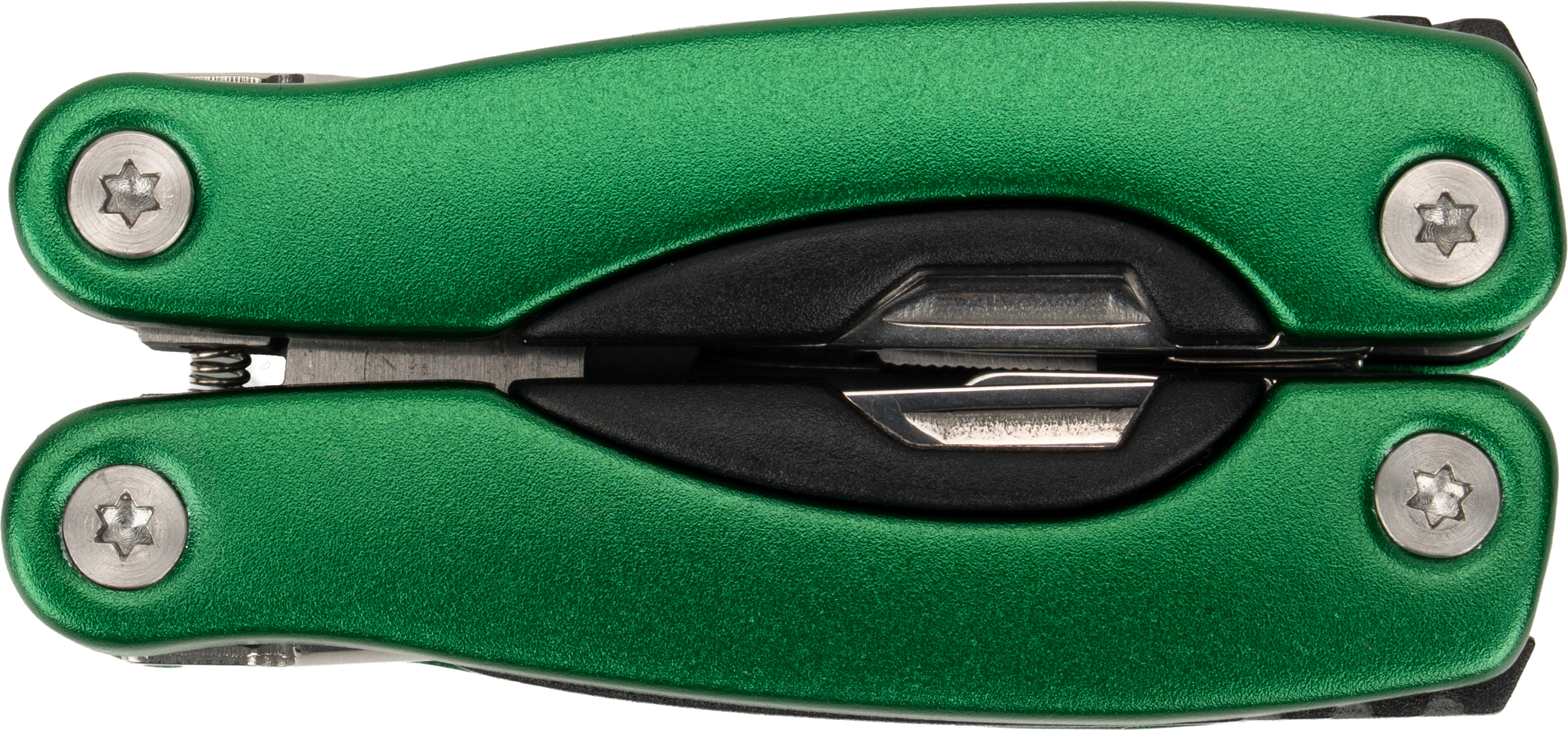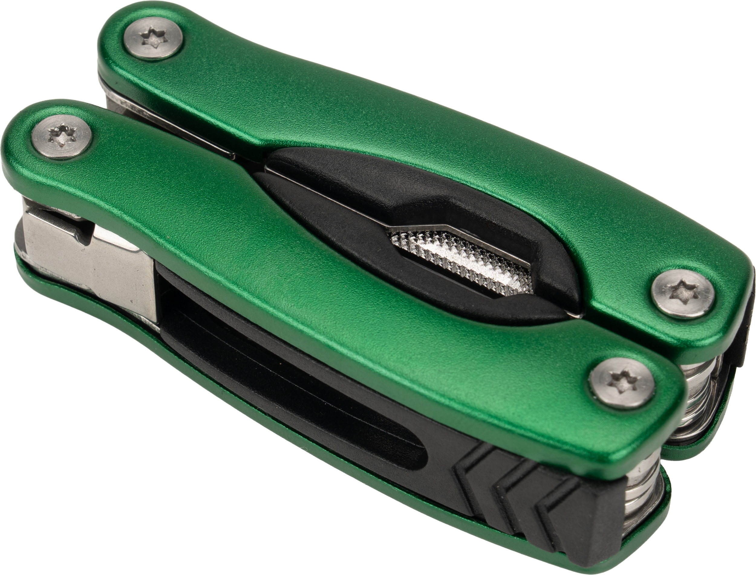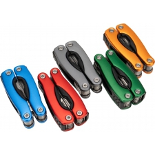 Multitool posiada 13 narzędzi, m.in.: kombinerki, pilnik, śrubokręt płaski i Philips, nóż, piłka, otwieracz do butelek i konserw. Narzędzie zapakowane w neoprenowy pokrowiec.