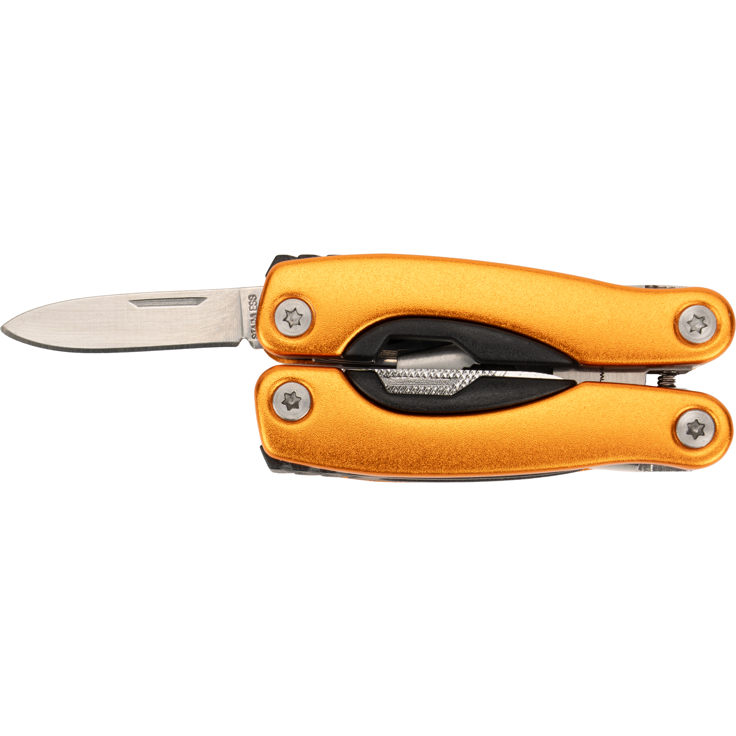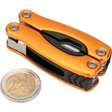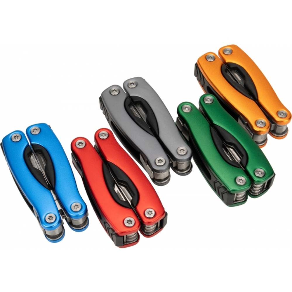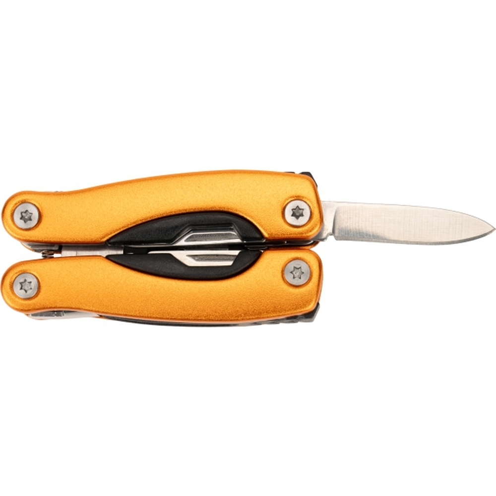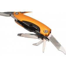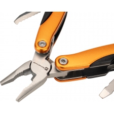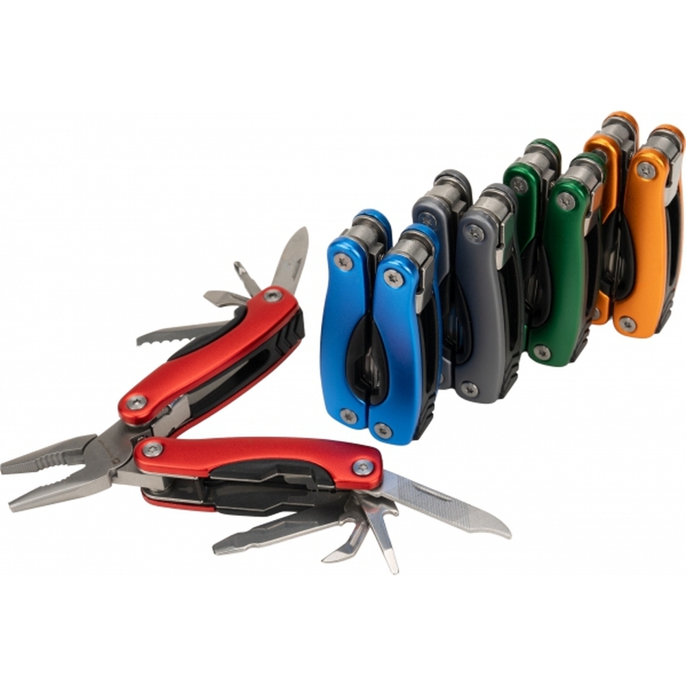 Multitool posiada 13 narzędzi, m.in.: kombinerki, pilnik, śrubokręt płaski i Philips, nóż, piłka, otwieracz do butelek i konserw. Narzędzie zapakowane w neoprenowy pokrowiec.