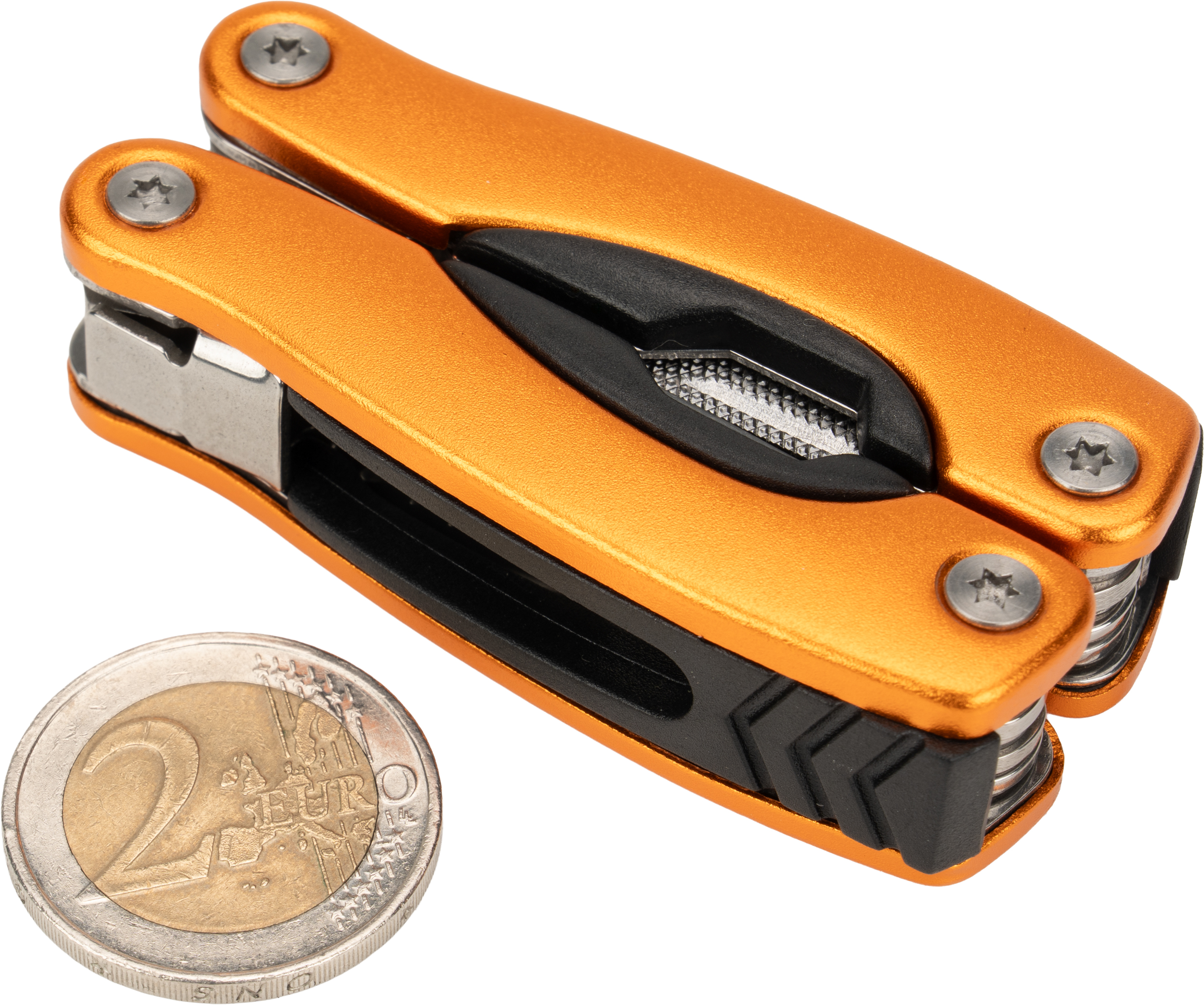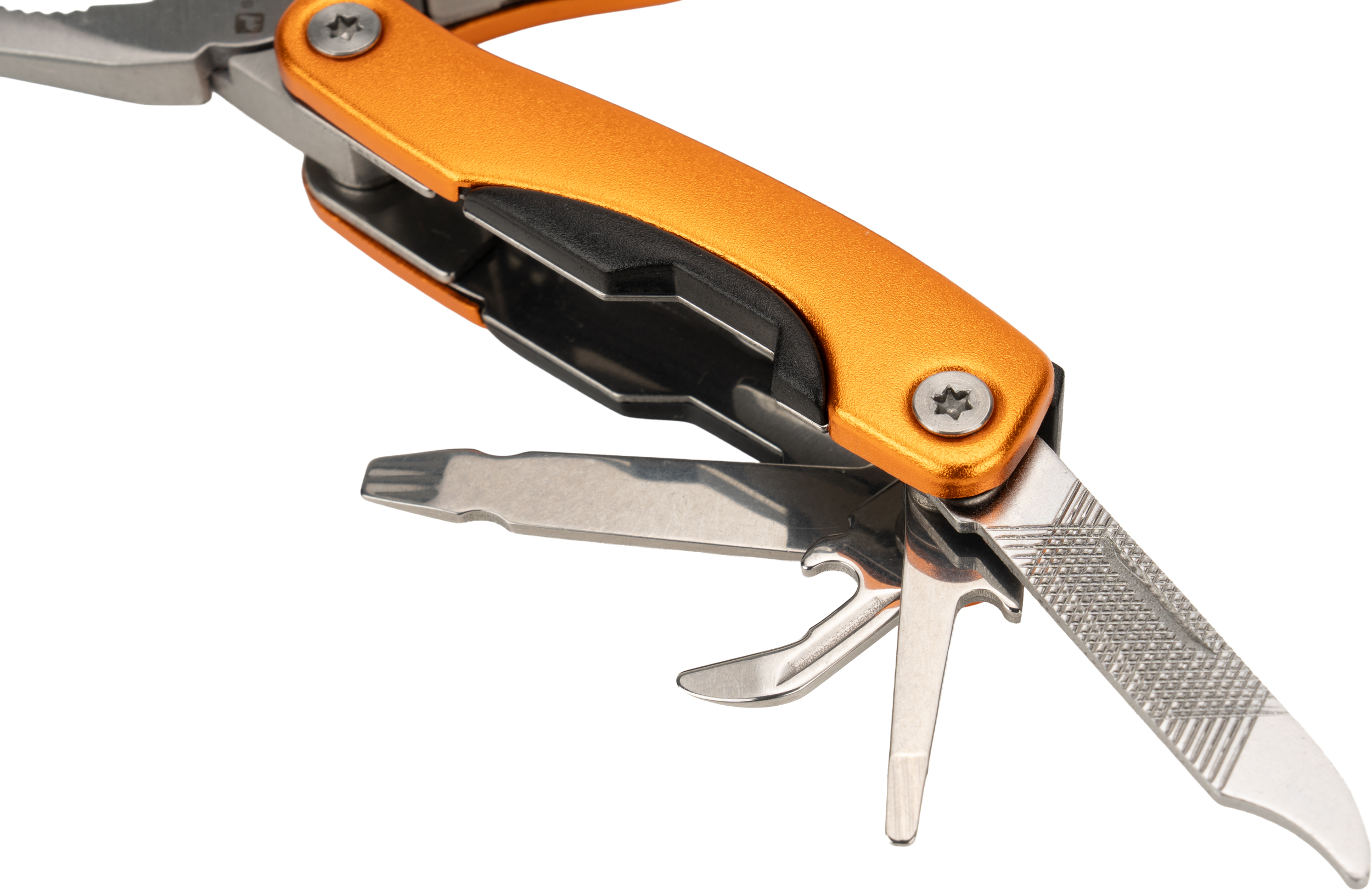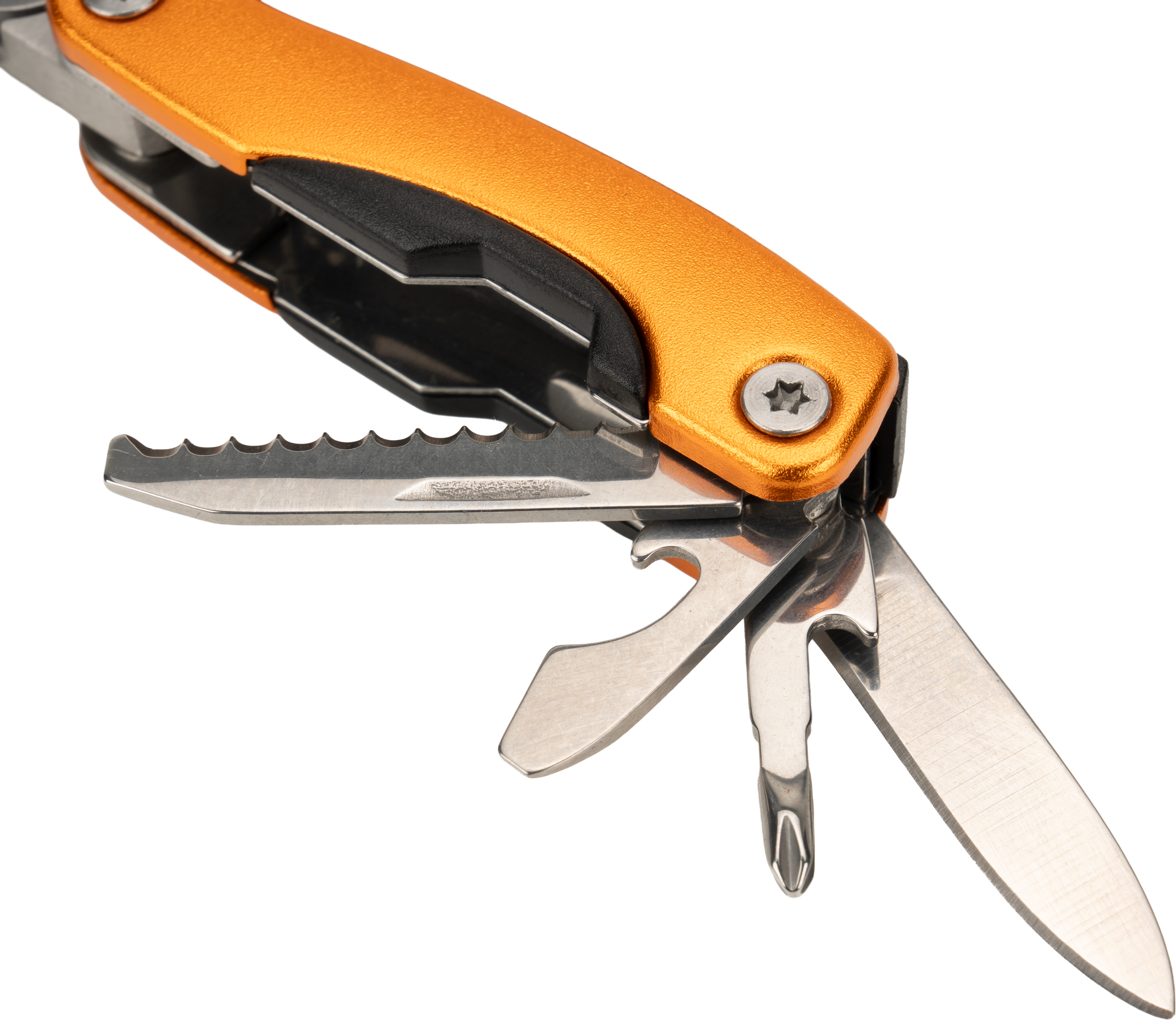 Multitool posiada 13 narzędzi, m.in.: kombinerki, pilnik, śrubokręt płaski i Philips, nóż, piłka, otwieracz do butelek i konserw. Narzędzie zapakowane w neoprenowy pokrowiec.